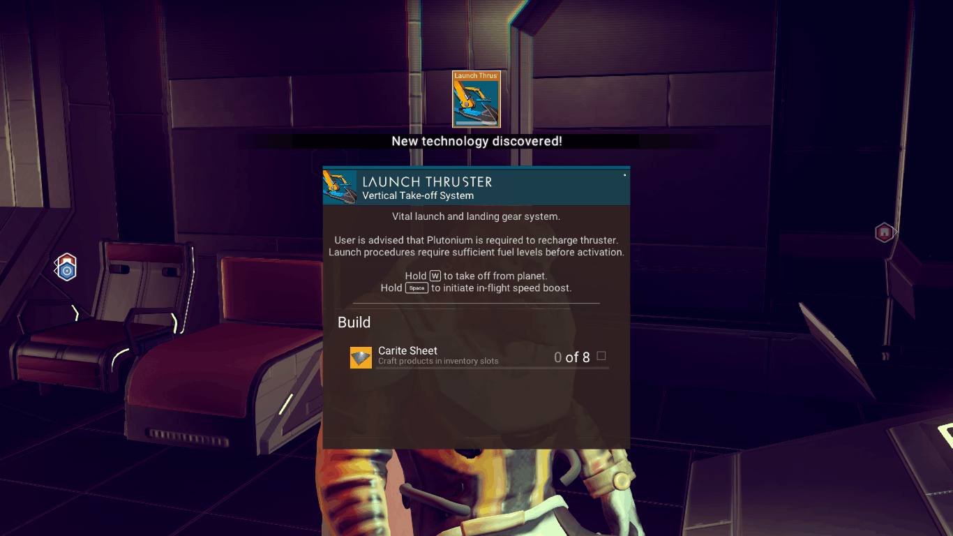Ik kwam het recept vrij snel tegen, volgens mij door een planneet te scannen, gebouw met laser te openen en toen technologie uit zo'n interface te halen.