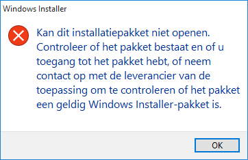 Maar als ik het bestand uitvoer om Brackets te installeren krijg ik een fout code van Windows.