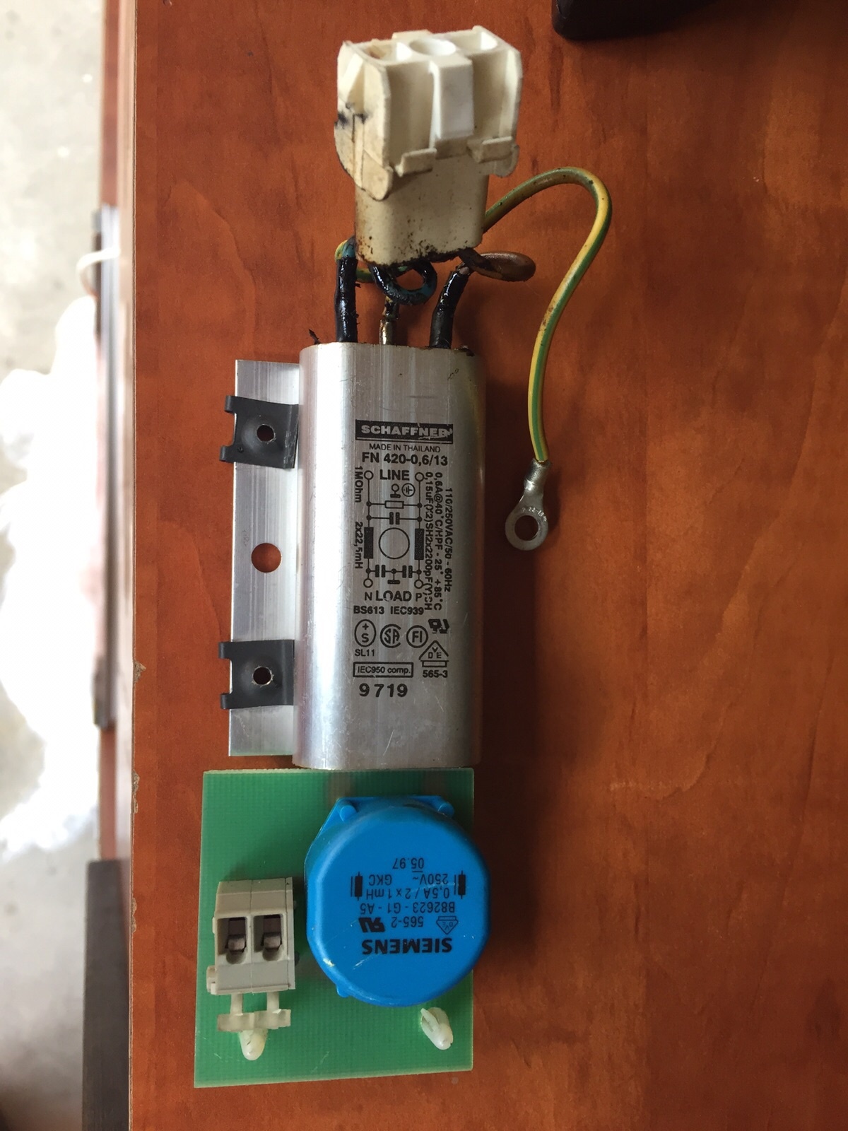 Het volgende onderdeel is dus bezweken, de Schaffner FN 420-0,6/13: