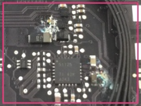 1) Er oxidatie op het logic board is (deze foto sturen ze mee) https://i.gyazo.com/5efab23d61c922cc4fdad95e56f5aa13.png