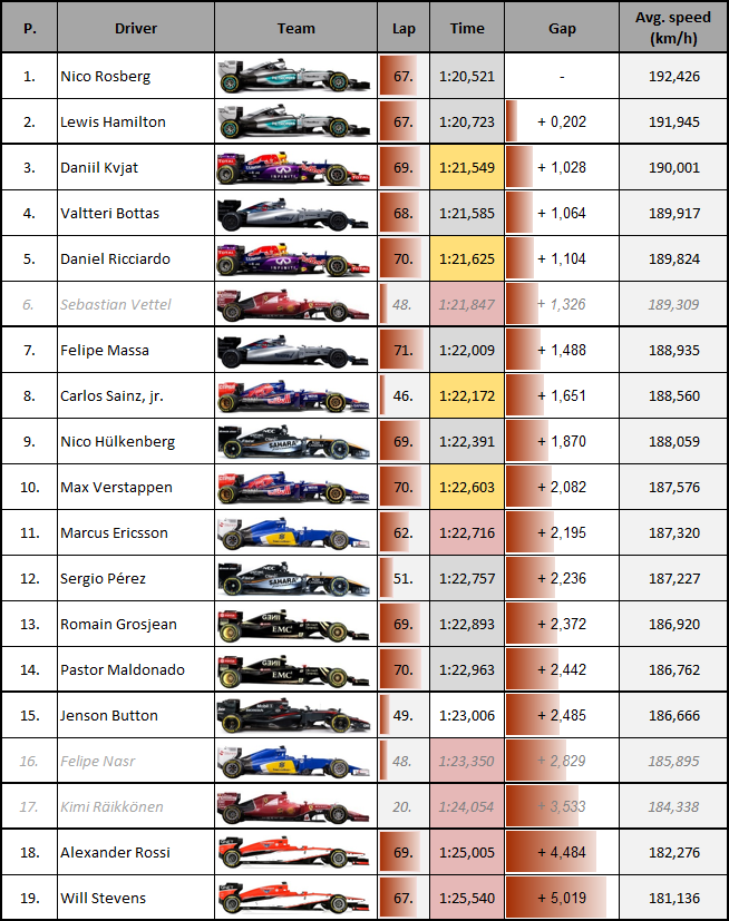 En wat is hier (en hierboven) de legenda van de rode / gele / grijze / witte kleur van de balken rondom rondetijden / topsnelheden?
