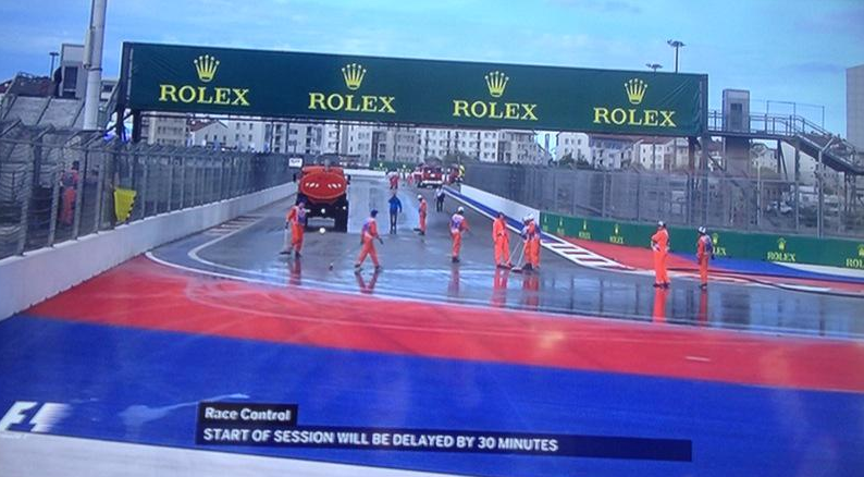 Trainingen weer begonnen :12:56 Het regent op dit moment stevig op het Sochi Autodrom.