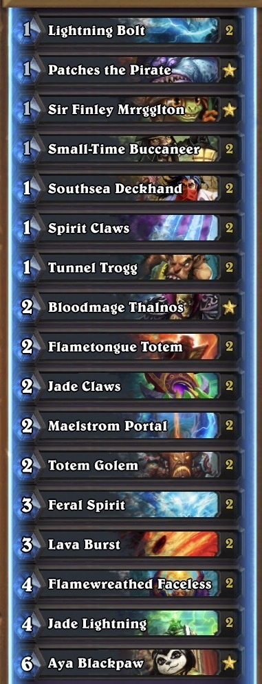 Renolock is op dit moment mijn favoriete deck, waardoor ik ook rank 5 ben aangetikt. Maar nu speel ik Miracle Rogue rond rank 3 met ja ja de Pirate package en daar vermaak me ook erg mee. Vooral de beslissingen die je soms moet maken, is het naar mijn ook een lastig deck.