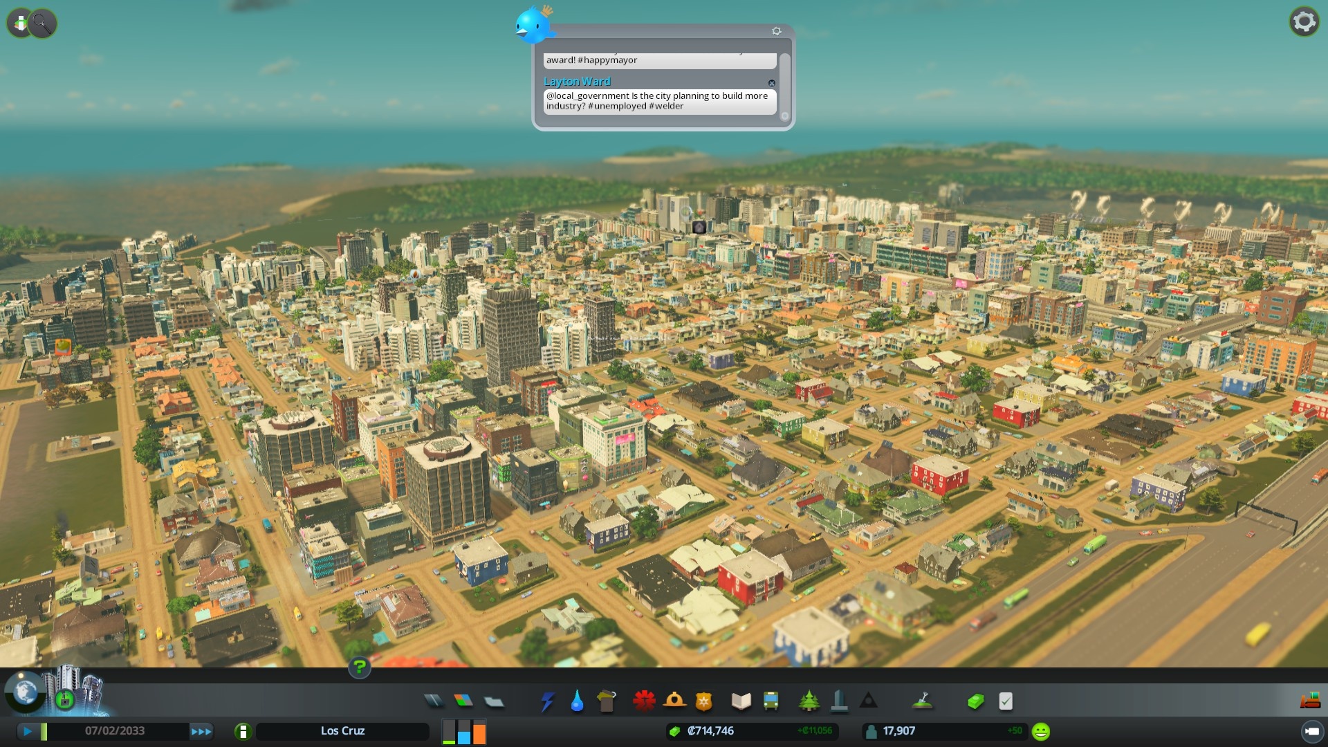 Vier steden?Ik heb maanden gespeeld met mijn eerste stad. Als het ding door het updaten van mods niet onspeelbaar geworden zou zijn, zou ik er nog steeds mee spelen.