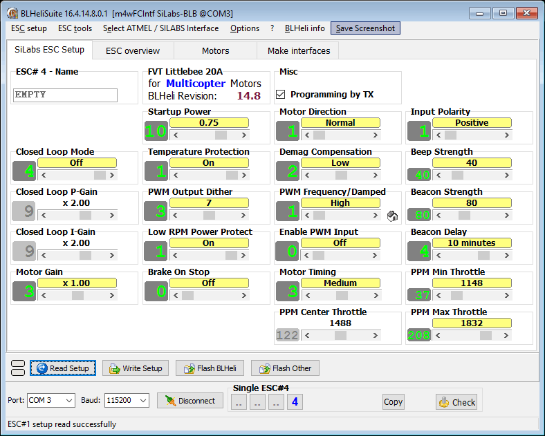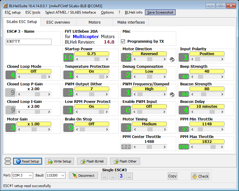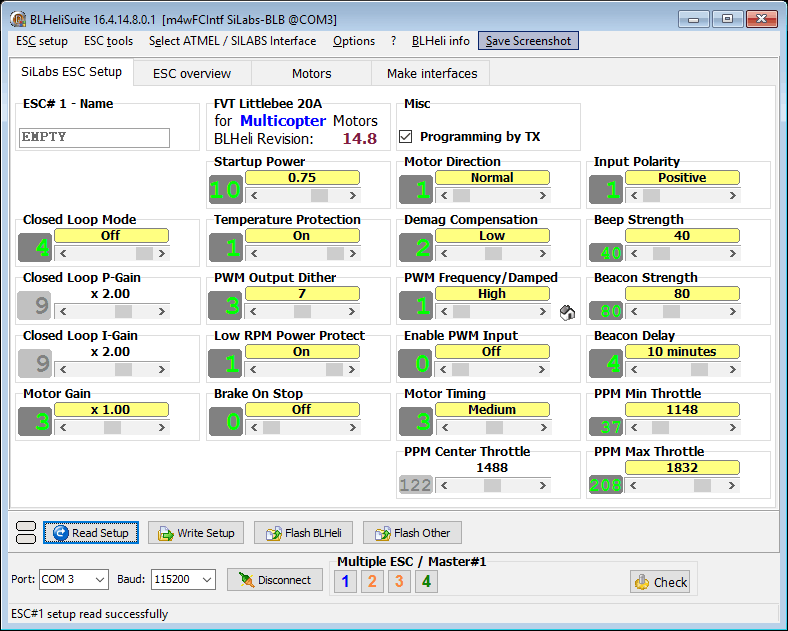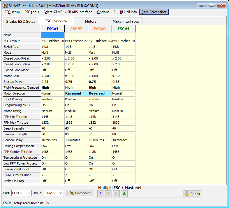 Maar je zou ook de motor lager kunnen controleren of ze allemaal even soepel draaien. Het is niet zo dat lagers evenredig slijten. Ook of motor as niet krom is en props in balans zijn.
