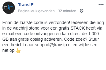 Voor degene die het gemist hebben: nieuws: TransIP kondigt einde aanmeldingen voor gratis Stack-opslag van 1TB aan