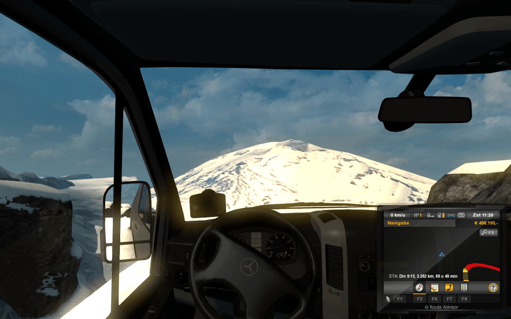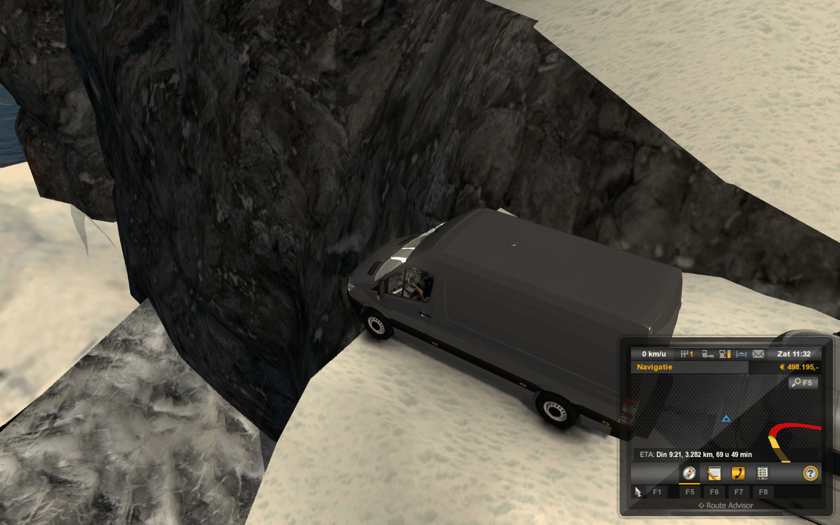 Het noorden van Rusland dan ga je de sneeuw in. Zijn wel echt megaritten. Zelfs binnen Rusland kan je ritten hebben van +4.000km. Wel leuker als je pas de wegen ontdekt als je er ook echt moet zijn. Het is zo makkelijk goto <stadsnaam> en je staat er maar dat is nou niet echt SIMULATOR achtig.