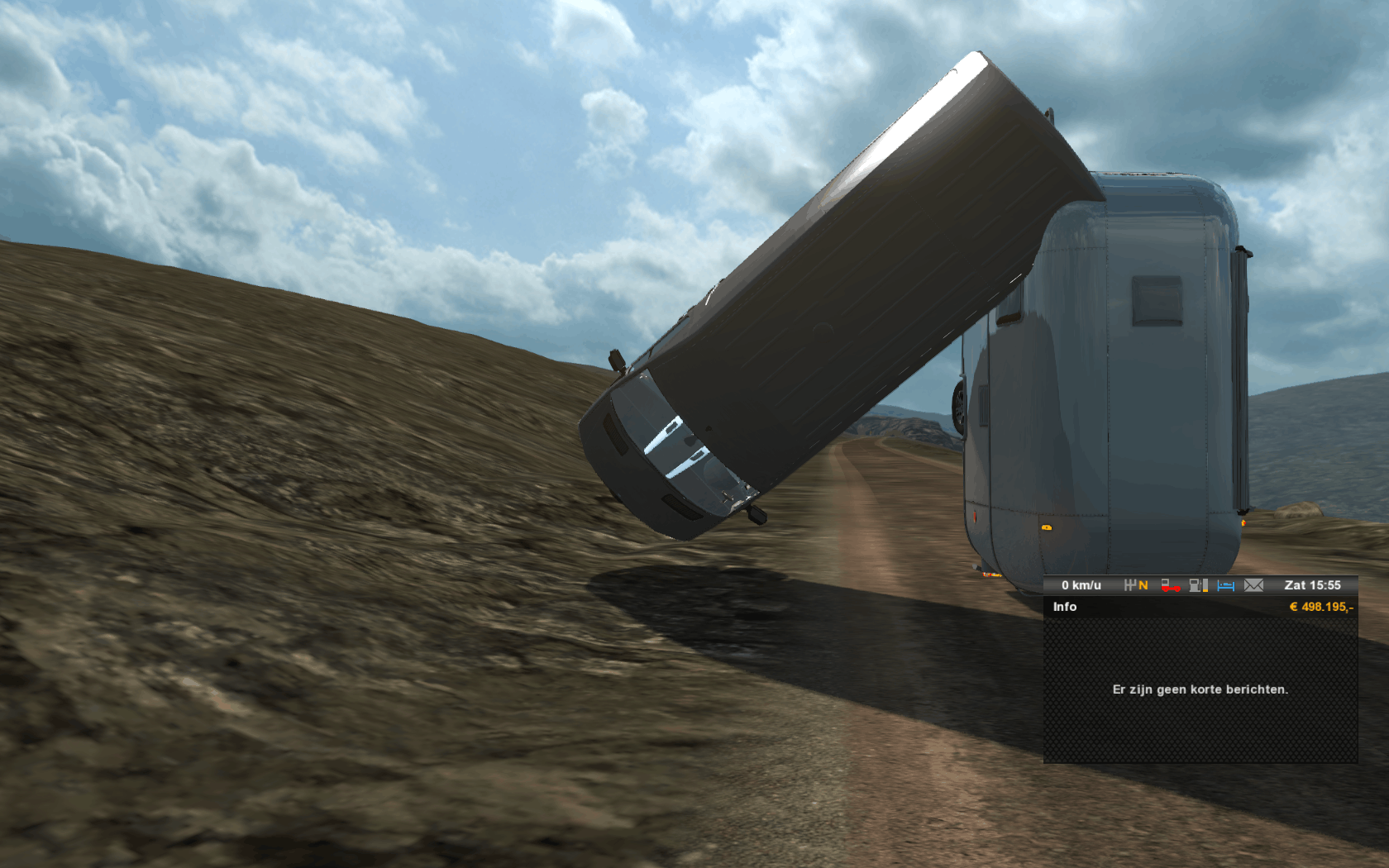 Gisteren RUSmap geinstalleerd en maar eens gaan rijden. Meteen jazzycat russian cars (alleen in rusland) voor extra realisme! Moet zeggen dat het met goed bevallen is. Vanwege nieuwe mod van Nantes naar thuisbasis Rotterdam terug. Vandaar uit naar Osnabruck gereden en van daar uit een AA gun opgepikt en 2064 km verder in Rusland afgeleverd. Flinke rit! Wel leuke uitbreiding, je kan toch wat extra kilometers pakken en Rusland (het stukje wat ik gezien heb) heeft toch betere wegen dan waar ik bang voor was