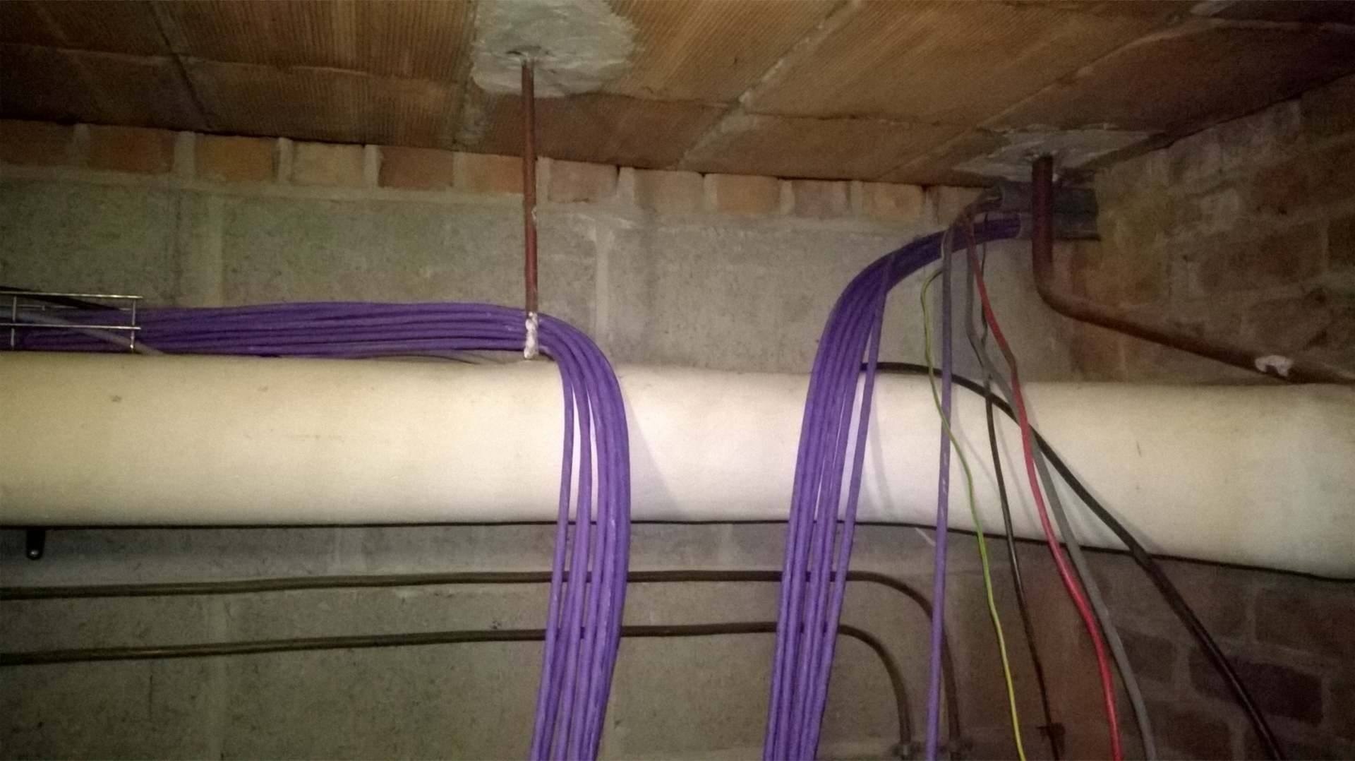 Aan de rechterzijde van de foto de kabels die naar de andere kelder ruimte gaan om van daaruit naar de living te gaan.