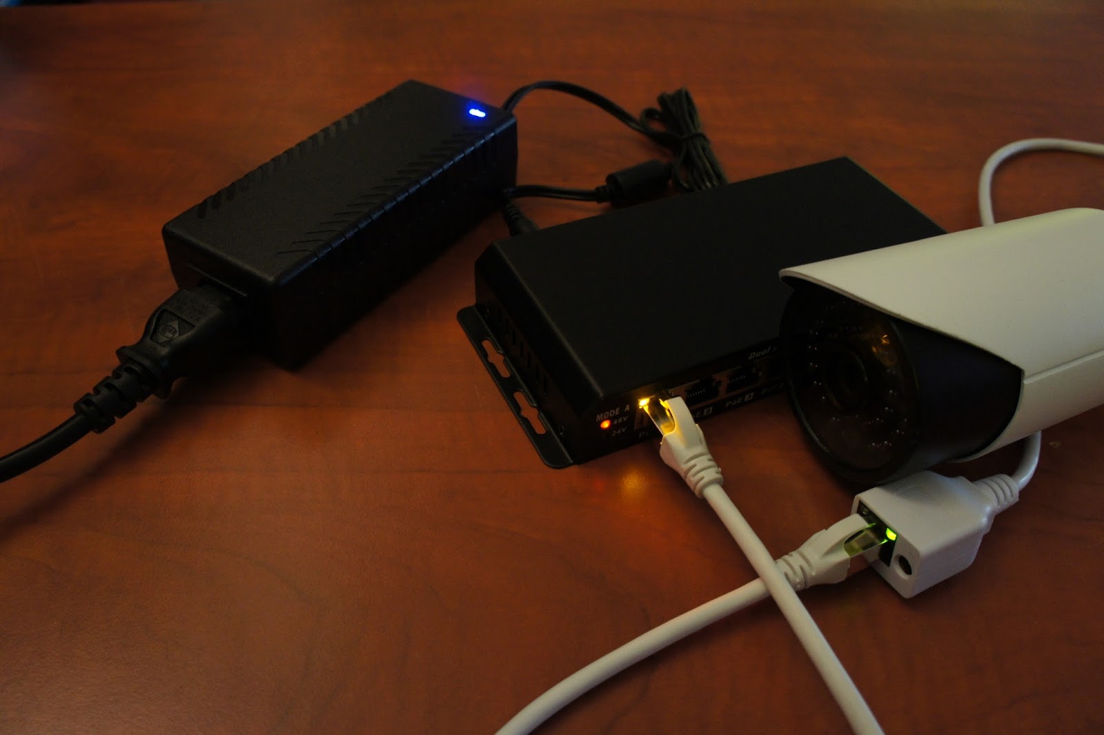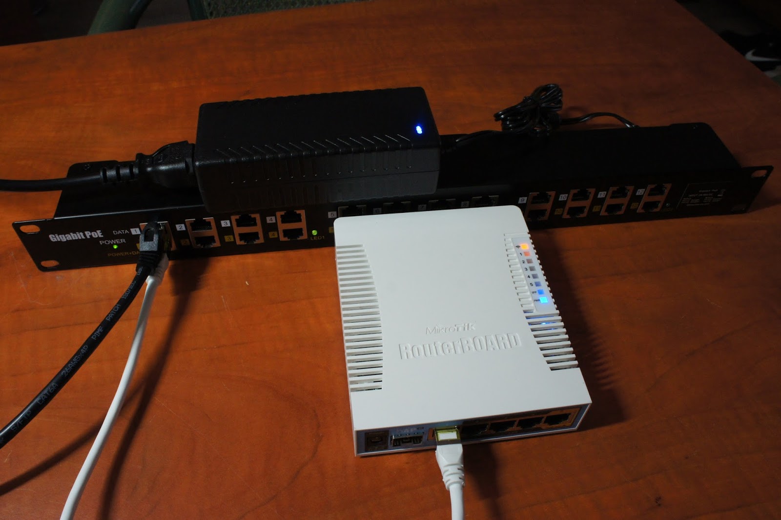 - De tv kast (samen met de coax kabel). Daar hangt deze in een gigabit switch waarop aangesloten: