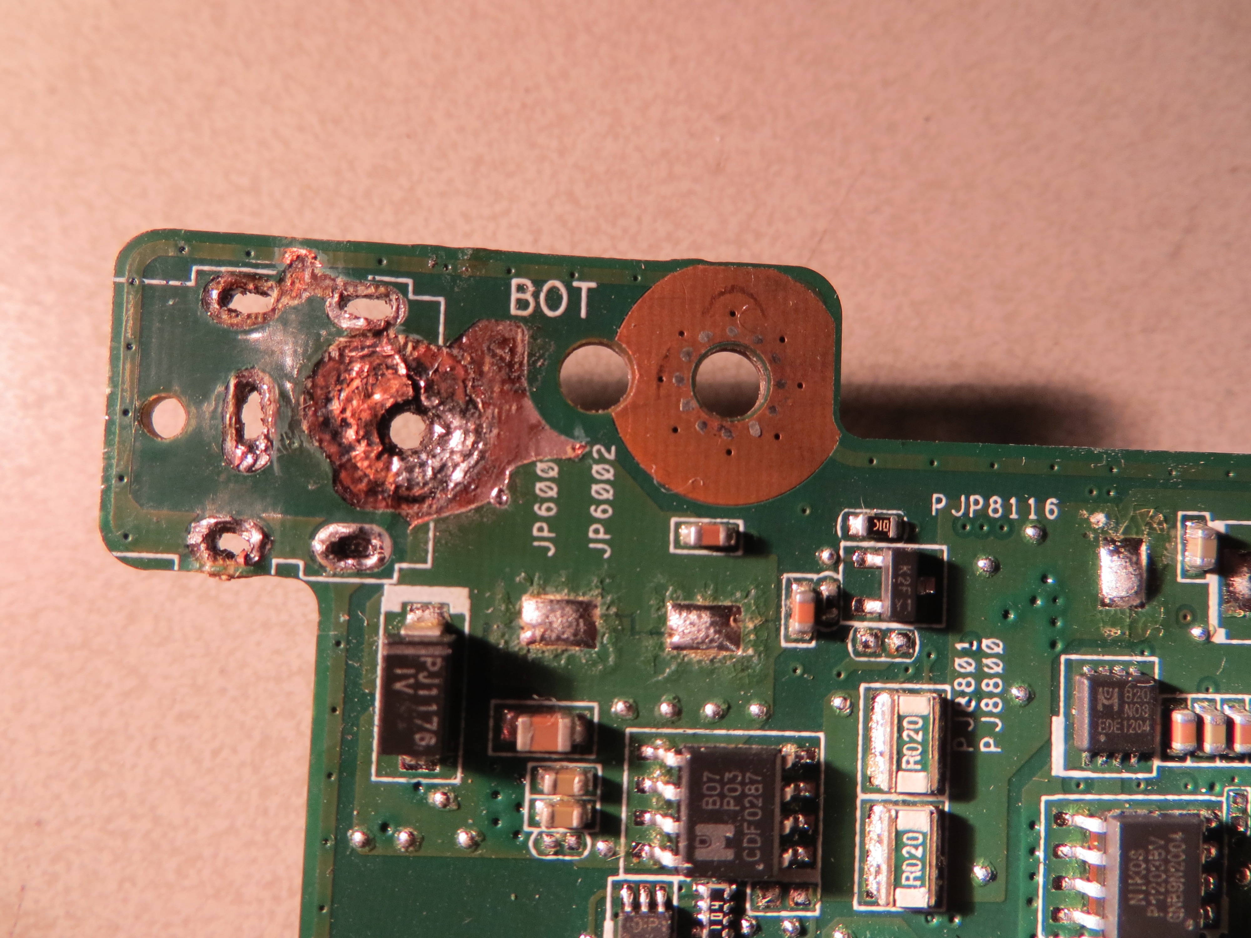 Ik heb al vaker DC jacks vervangen, maar dan was er zo goed als geen schade aan het moederbord.