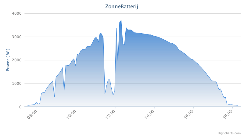 Oke, dan een iets groter dipje, haha. Hier van 3800Wp naar 2000Wp en terug naar 3800Wp.
