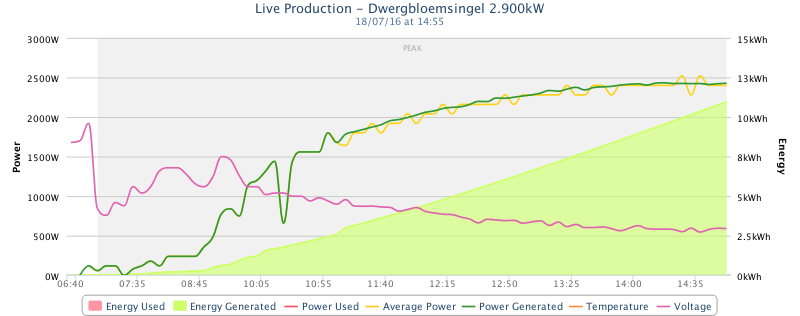 De 14e had je vrij veel pieken door bewolking, de panelen kunnen dan even afkoelen.Maverick schreef op maandag 18 juli 2016 @ 13:32: