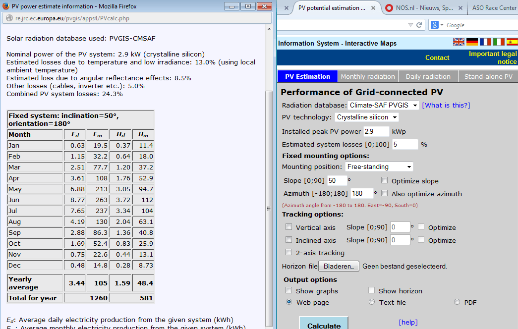 Maar wat vul je precies in? als je de waarde van 2,9 invult (let er op dat het in kW ingevuld wordt!) en je je locatie doorgeeft en welke hoek en richting je set staat, krijg je toch echt wel redelijk betrouwbare data al er uit.