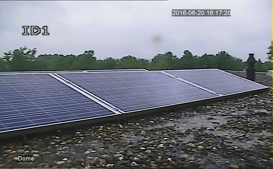 en de schaduw van de ventilatiepijp begint weer op de panelen te vallen,