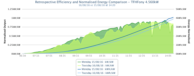 /edit: Wel grappig om te zien dat het vandaag nek-aan-nek op gaat met onze installaties. Meestal is die van TFHfony zo'n 10-20% beter dan mijn systeem. Ben benieuwd of het aan het eind van de dag nog zo is.