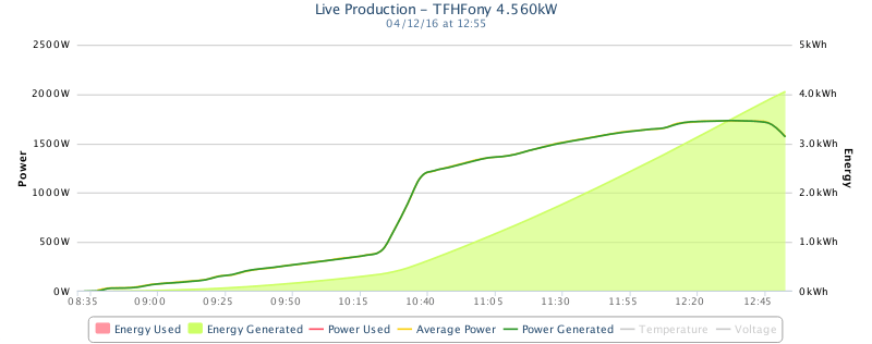 Onze installatie op het zuidwesten met redelijk wat schaduw in deze tijd komt er natuurlijk ook niet aan te pas nu.