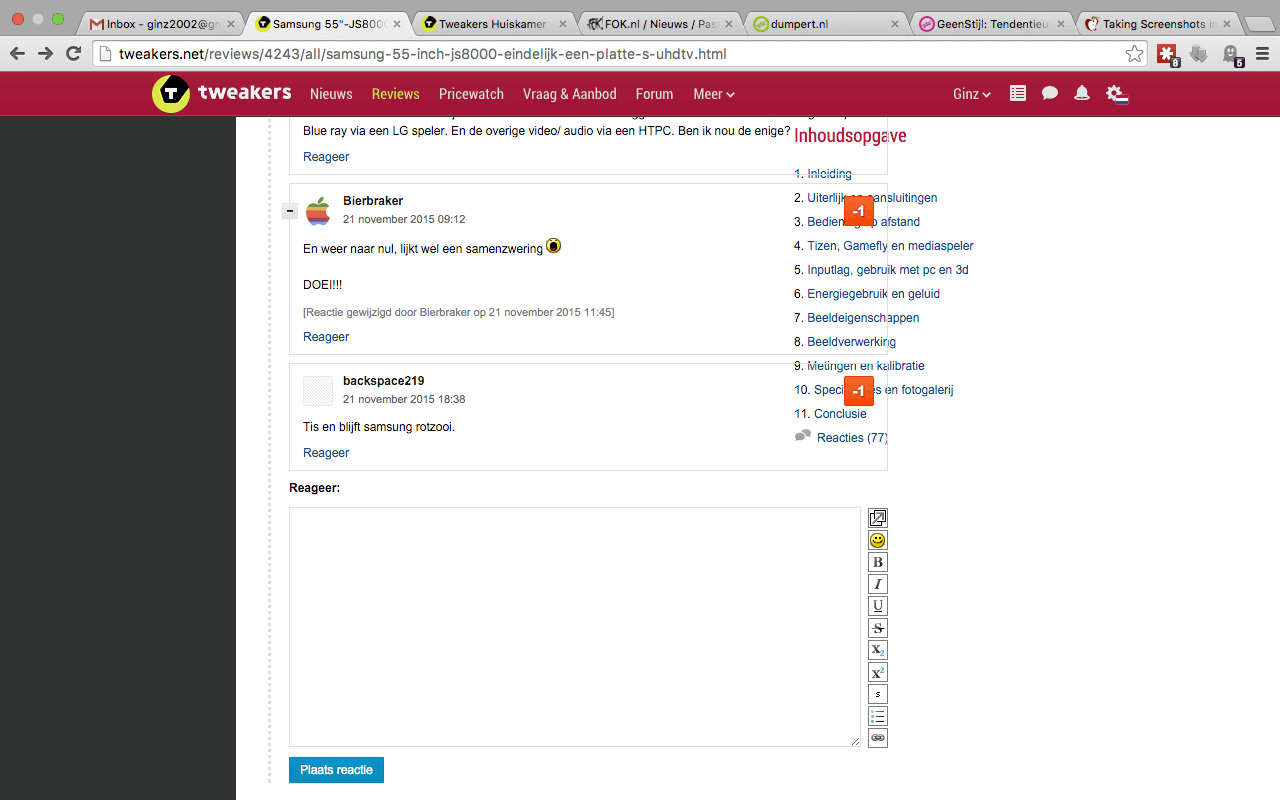 Kan aan m'n custom css liggen, maar ik zie het probleem niet. De inhoudsopgave komt op dezelfde plek terug als waar 't stond, niet over de reacties heen zoals bij jou.