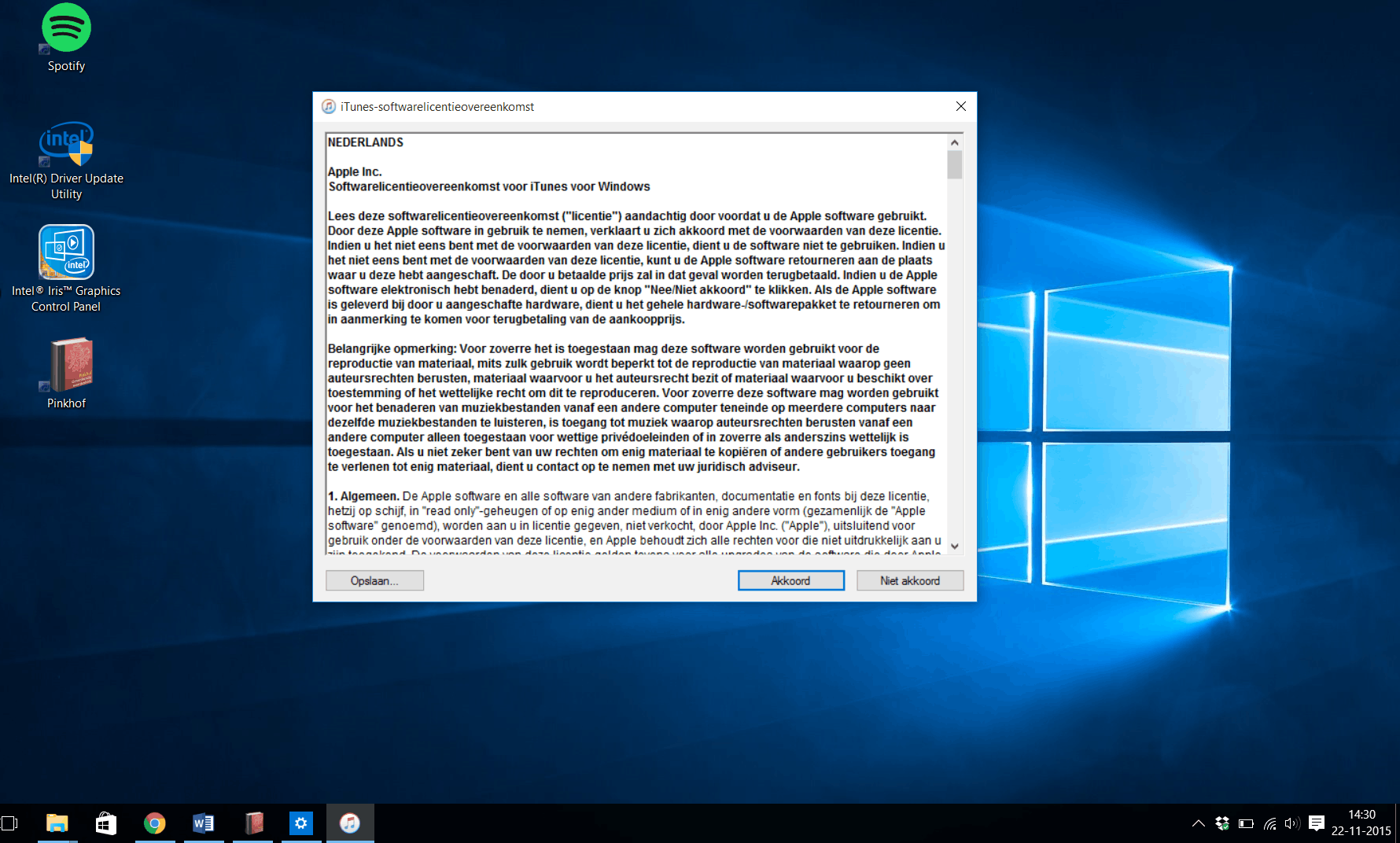 Ik heb al gekeken of het updaten van de Intel Iris graphics zin had, maar dit had geen effect. Hieronder een screenshot van het voorwaardenvenster van iTunes als voorbeeld: