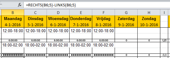 Normaal als 12:00 en 18:00 in 2 losse cellen zou staan is dit natuurlijk geen probleem, dan is het een simpel sommetje. Maar omdat de 2 tijden in 1 cel staan is dit toch wat lastiger dan gedacht.