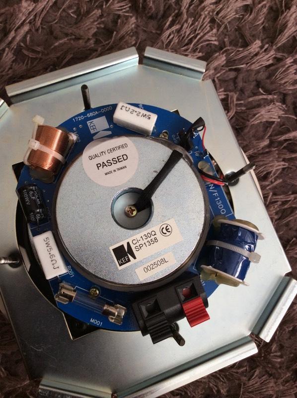 Het lijkt me wat veel electronica voor alleen een speaker, dus wellicht zit er ook een versterker bij? Ik denk bijvoorbeeld een zekering te herkennen. Maar het vreemde is, dat er maar twee draadjes aan het ding zitten die het plafond in verdwijnen: een bruine en een witte. (Zie derde foto, rechts.) Ik zou verwachten dat voor een versterker je minstens 3 stuks nodig hebt (signal, GND, en netstroom). Klopt die gedachte?