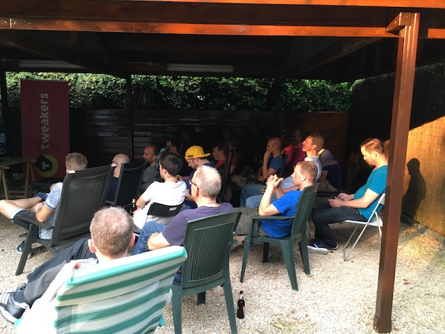 Dorien dacht even foto's te maken om een uur of 8 gisteren van 20 BBQende simracers.
