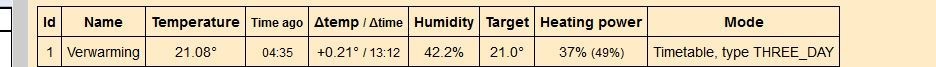 Mijn ervaring met de vloerverwarming is overigens dat het vele uren duurt om van 18,5 graden weer terug te komen op 20,5. Als alle warmte uit de vloer is kost het een halve dag om die er weer in te krijgen met tevens een flinke overshoot, weer gevolgd door vele uren geen warmte vraag enz. De afwezigheidstemperatuur is volgens mij echt bedacht en nuttig voor radiatoren en niet voor lage temperatuur systemen. Ik heb De helpdesk overigens een keer of drie mijn algoritme laten aanpassen en nu werkt het bevredigend met de vloerverwarming. Ik moet wel na de nacht tijdens het weer aanwarmen bij ongeveer 19,8 graden de zaak een half uur handmatig op 17 graden zetten, zodat Tado van 100% direct naar 0% gaat. Doe dat meestal als ik de hond ga uitlaten. Na dat half uur zit ik dan bij thuiskomst meestal op 20,1 en gaat Tado rustig modulerend naar de doeltemperatuur van 20,5 en weet die dan redelijk te houden. Doe ik dat niet, dan gaat Tado nog steeds veel te lang door op een te hoog vermogen. Voor mij werkt het zo wel, maar het blijft moeizaam met vloerverwarming.