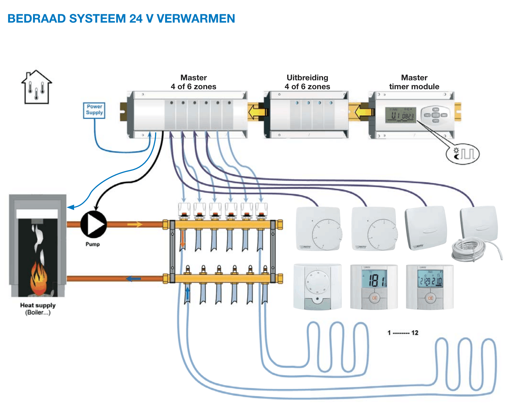 Let op: Het kan niet andersom, de thermostaat moet bedraad aan pomp, extensiekit aan ketel.