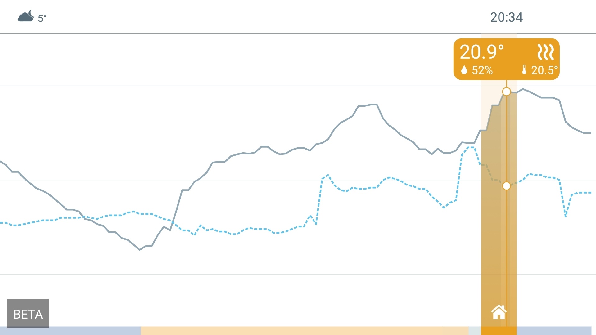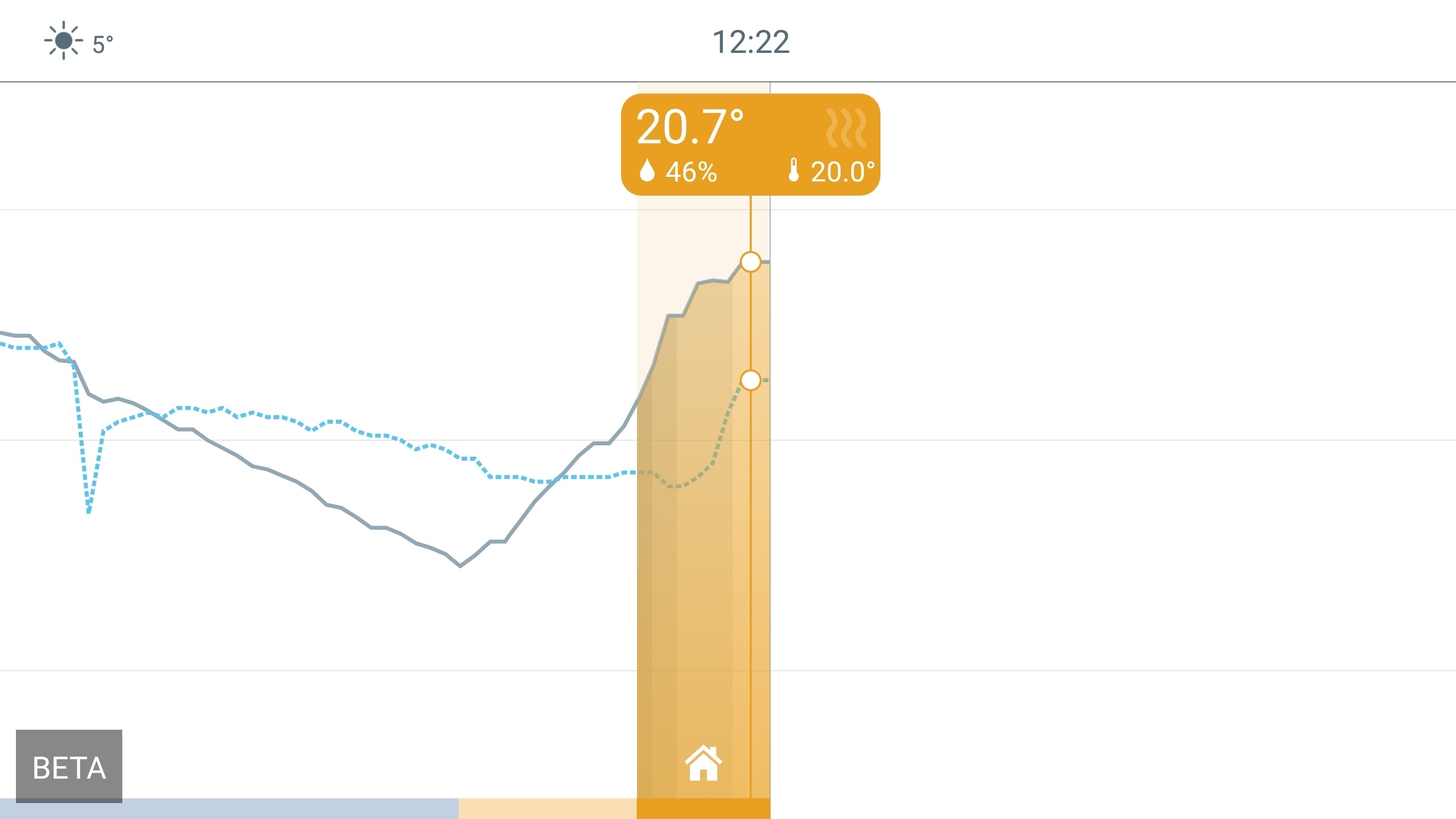 Zelfs dan slaat het nog nergens op. Op een dag dat het buiten rond het vriespunt was heb ik getest met een vaste temperatuur op 19.5°C en er was slechts één golfje nodig om het huis op temperatuur te houden. Er is geen fatsoenlijke manier om dit uit te leggen, anders dan dat het een bug is.