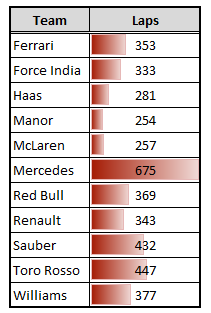 Het doel van elk team deze week is om zoveel mogelijk data te verzamelen van de ontelbare variabelen op een auto. Daar zijn zoveel mogelijk kilometers voor nodig. Exact wat Mercedes nu heel erg goed doet