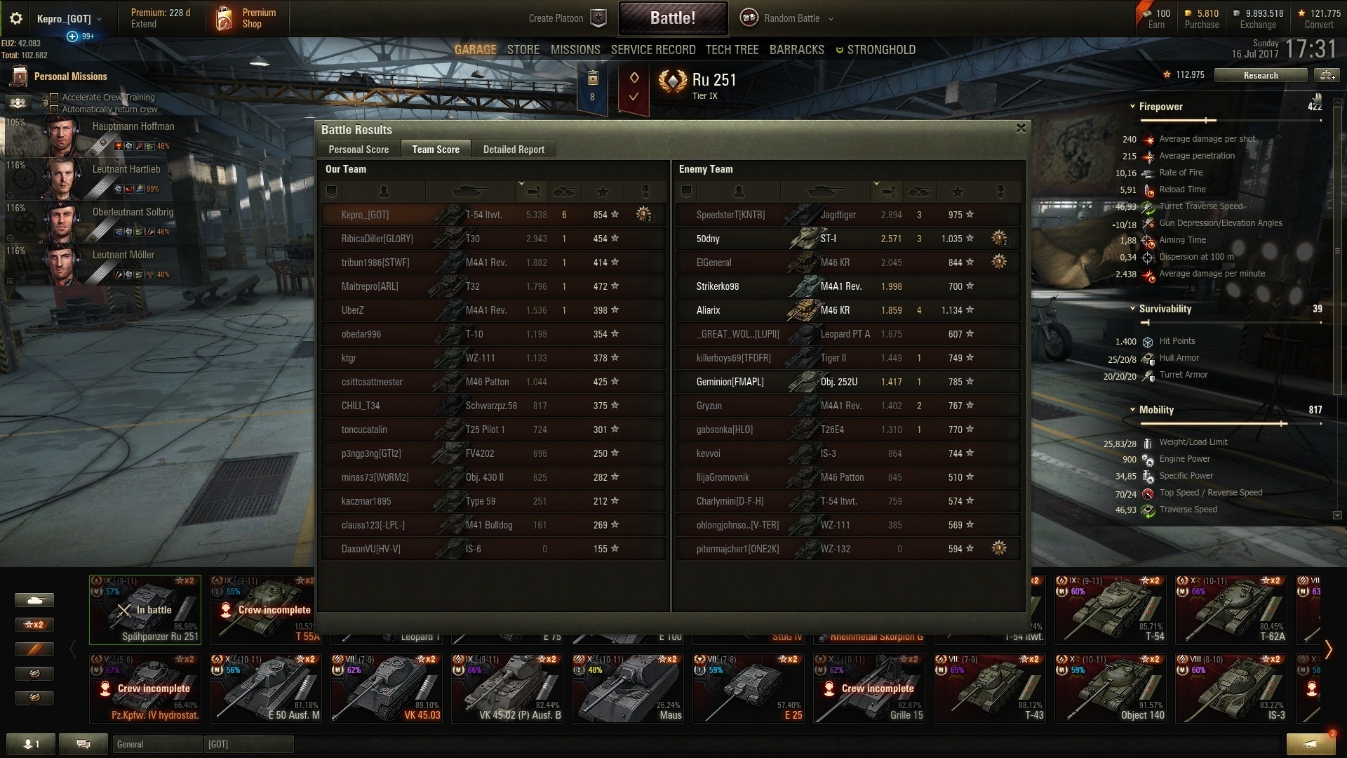 Waren het veel lights toevallig, of gewoon veel echt zieke games gehad? 6,2k wn8 is noot badKepro schreef op dinsdag 18 juli 2017 @ 22:14: