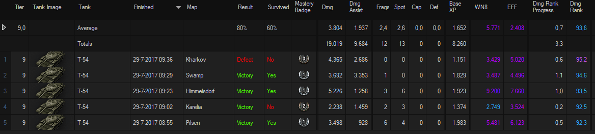 Ook nog diverse potjes in de M44 gespeeld om wat missies bijeen te harken. Maar de game zei duidelijk fu. Eerder deze week nog 4 missies in 6 potjes binnen geharkt, met structureel probleemloos boven de 3k combined. Nu was ik al blij als mijn shell in de buurt van de tank mocht landen en de 1k grens bereikt werd