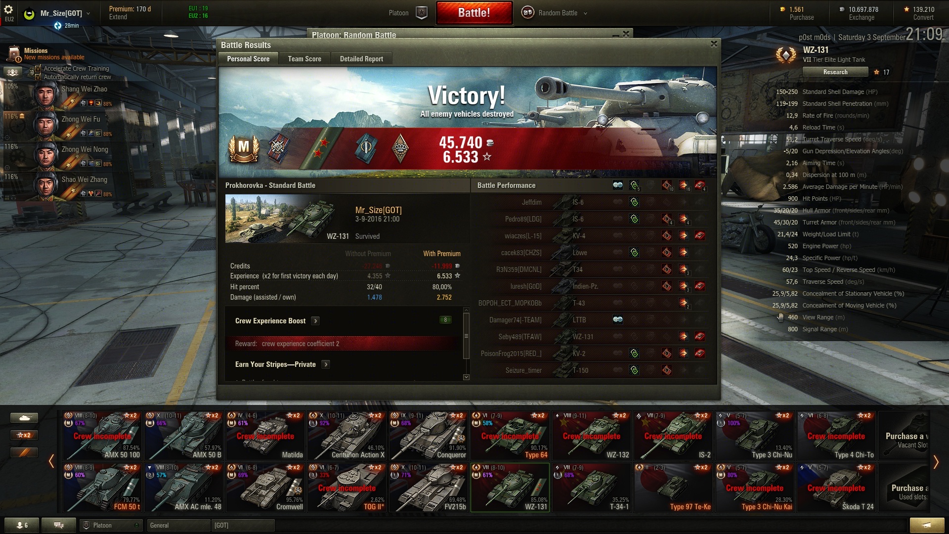 Total XP: 6066 (x2 + reserve + premium account)