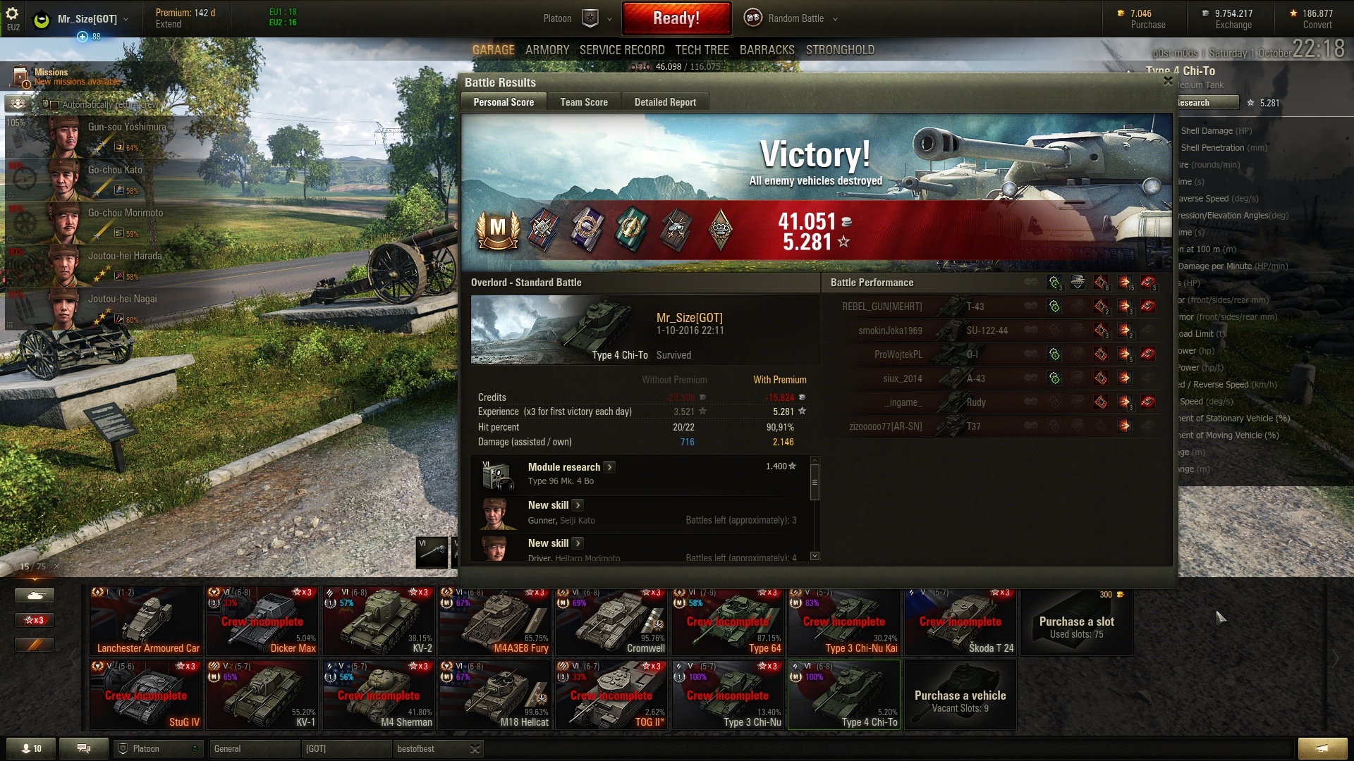 Daarnet even een sessie gedaan met de Hellcat, sowieso voor de damage en kills te doen van USA en ook om toch maar eens naar de 3e MoE te grinden. Moet zeggen dat het wel lekker ging, met uitzondering van 3 battles.