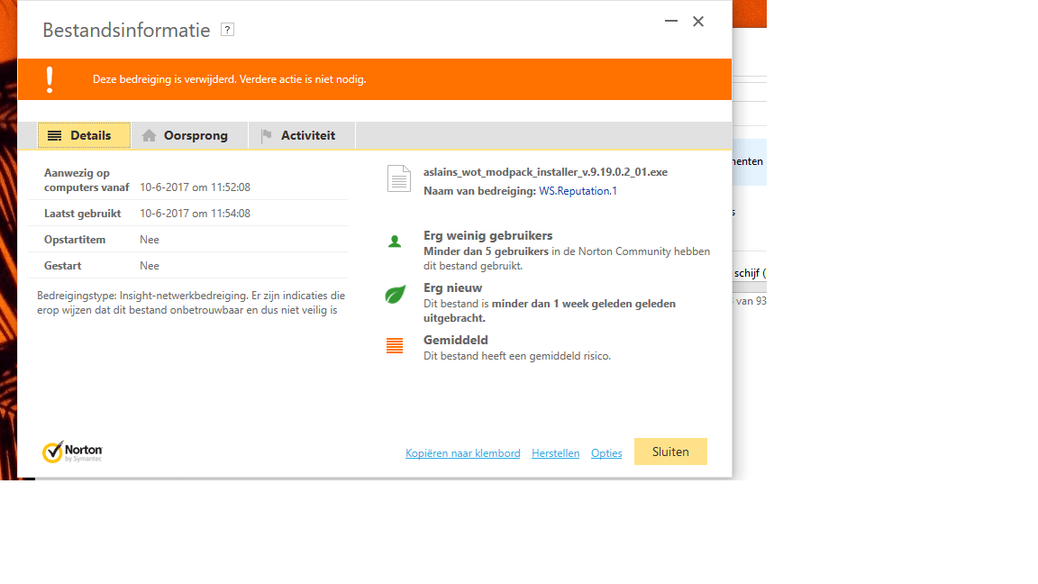 Op Norton site staat die melding beschreven https://www.symantec.com/...avoid-wsreputation1-errorKepro schreef op zaterdag 10 juni 2017 @ 11:58: