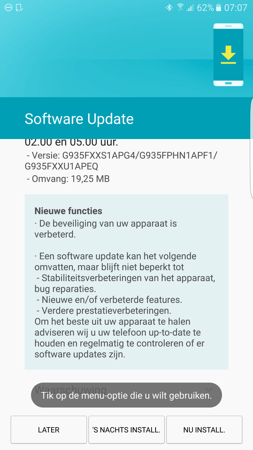 [Samsung Galaxy S7 Serie] Nougat update problemen