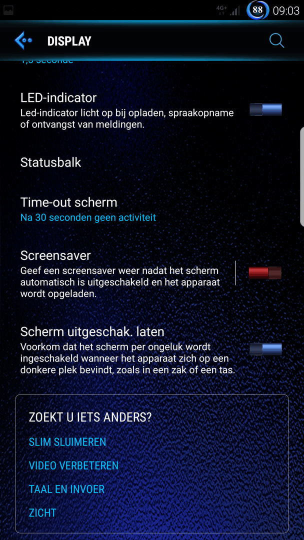 Het scherm is echt heel erg goed. Heel af en toe denk ik "misschien is er soms nog een iets te blauwige gloed", maar het feit dat zwart echt zwart is... nou, fantastisch. Dan kwamen we ook meteen bij de always-on functionaliteit: als het scherm uitstaat altijd toch nog de tijd kunnen zien, of dat er een gemiste oproep is, of welk liedje afspeelt. Top!