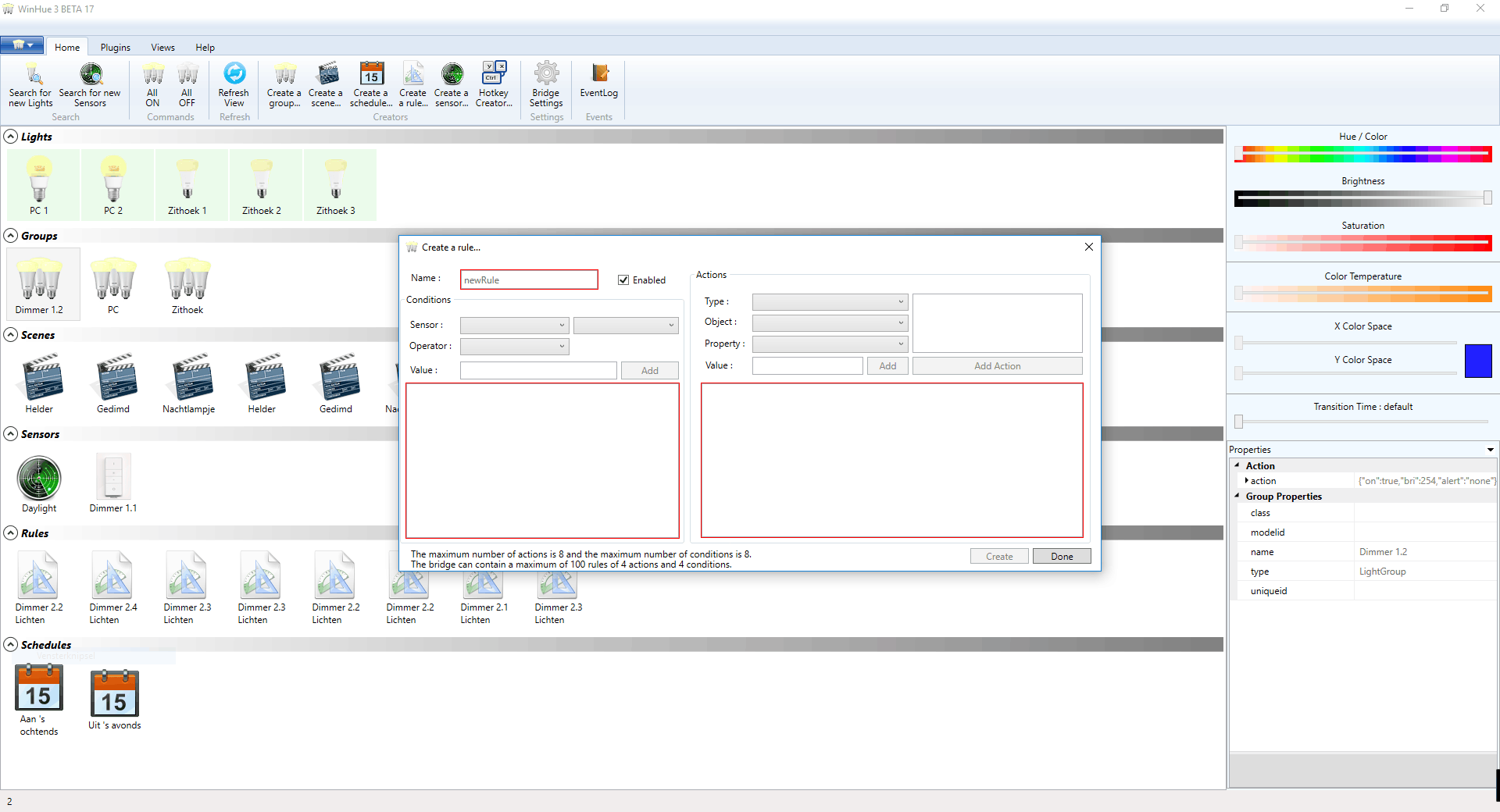 Ja dat kan, is niet eens zo heel moeilijk. Die Bridge bevat een rule engine die je kunt vullen met regels, welke condities hebben en acties kunnen uitvoeren. Ik heb een gecombineerde woon/eetkamer, met twee motion sensors. Eén motion sensor hangt in het woon gedeelte en de andere hangt in het eet gedeelte._Piv0 schreef op maandag 19 december 2016 @ 20:48:
