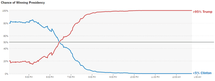 Ik denk dat er meer sprake is van Clinton slump ipv Trump surge. Hij hield de republikeinse stemmen en Clinton verloor er vele. Of Warren/Biden/Sanders het beter zouden hebben gedaan zal een eeuwige vraag blijven.