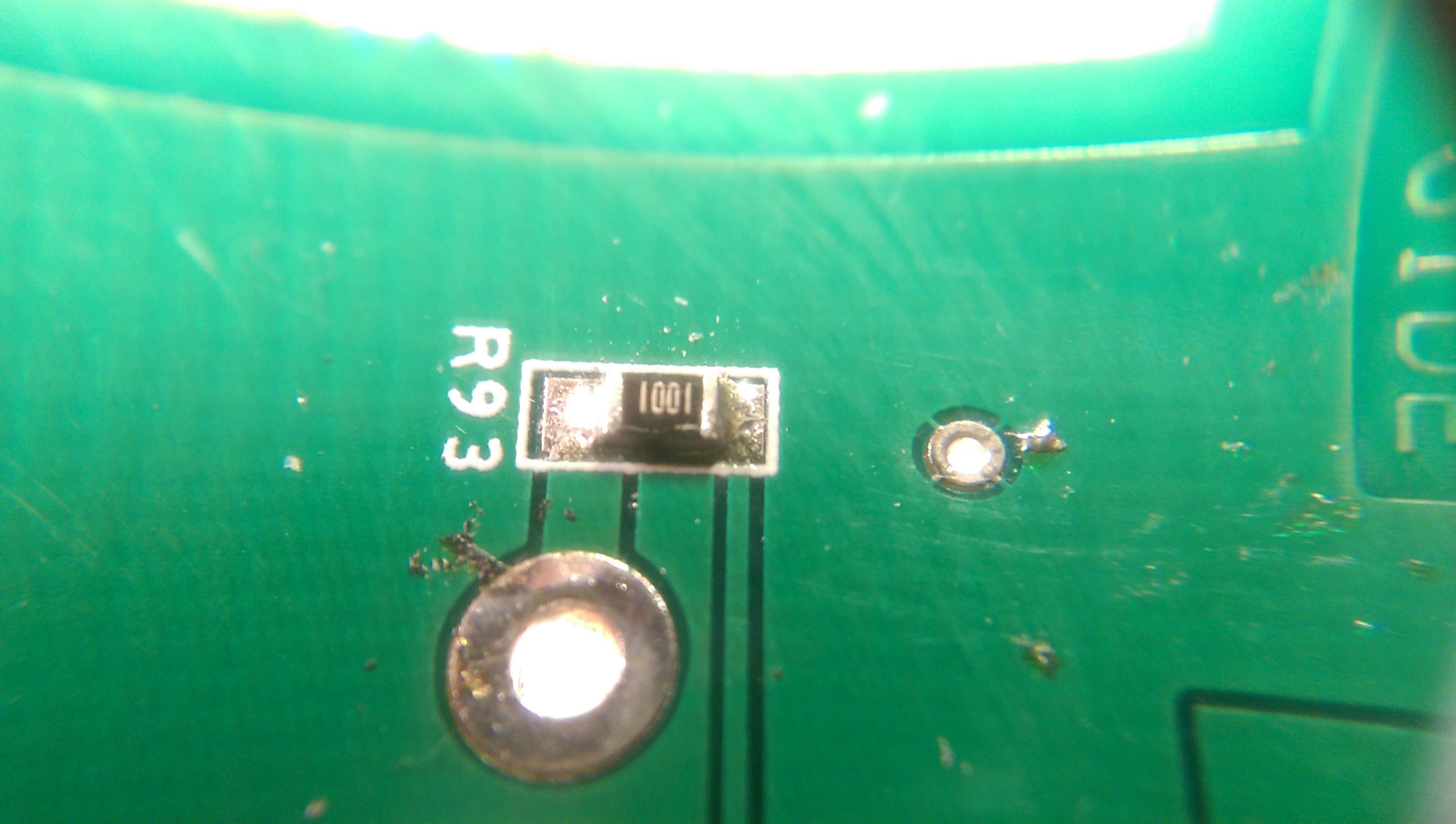 - Rond R93 zat wat 'zooi' en deze lijkt doorgebrand maar meet netjes 1 kOhm. ONDERTUSSEN VERVANGEN