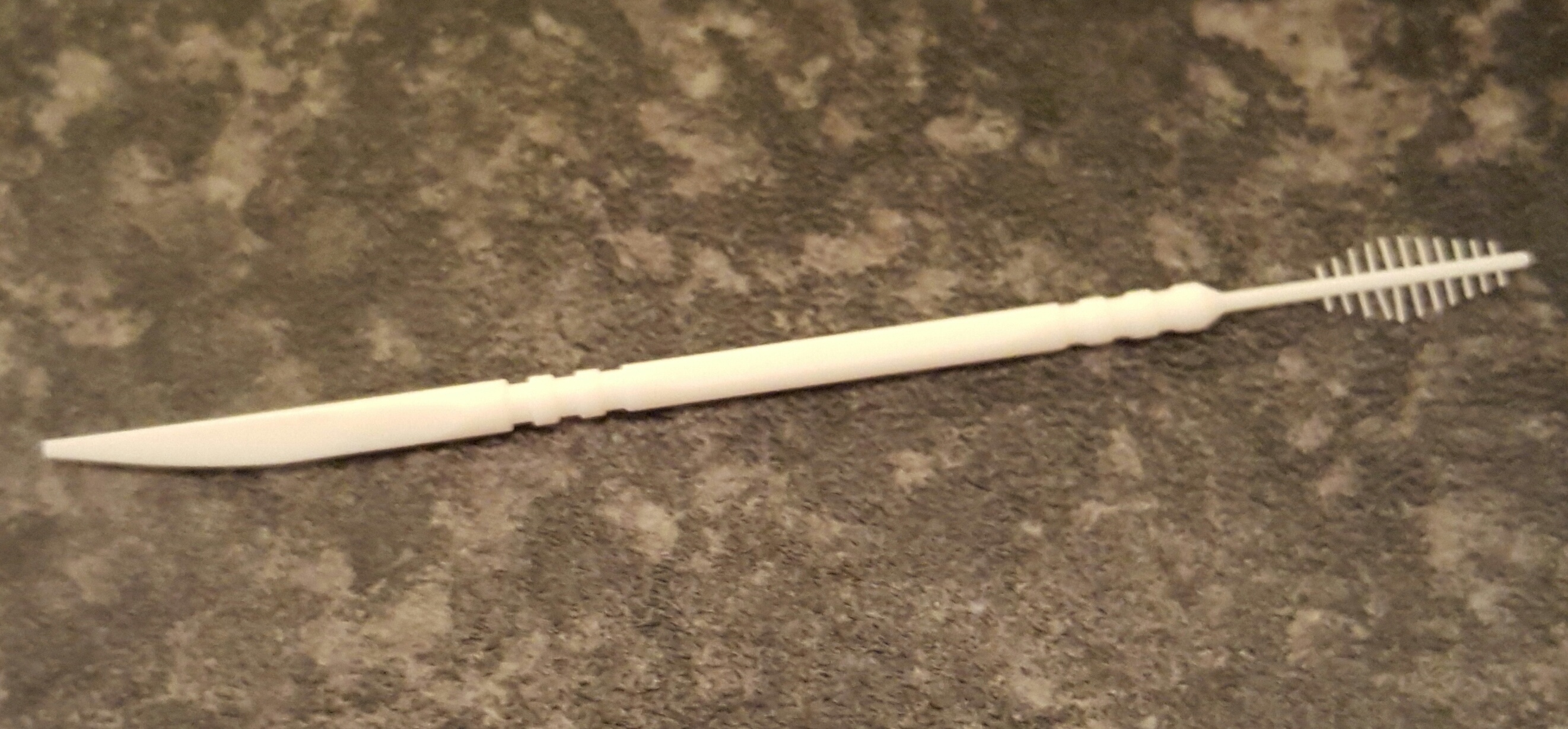 Ik heb uiteindelijk wat tape om een sate prikker gedaan en daarmee de stof eruit getrokken. Wel van dat tape gepakt wat niet extreem plakt en geen lijmresten achterlaat, anders is het weer vragen om problemen.