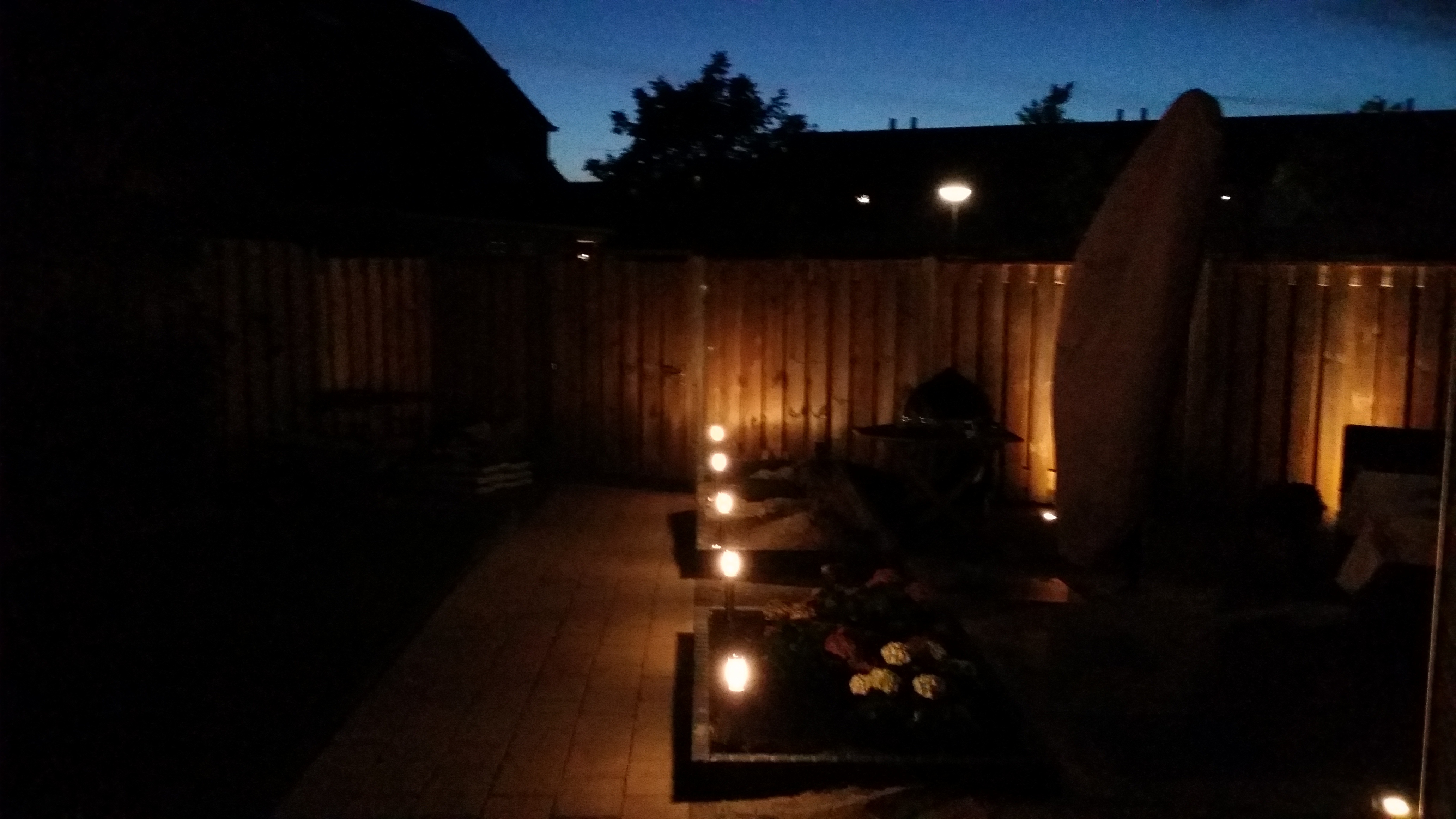 - In de tuin komen 4 lampen (230V) die door middel van een bewegingssensor geschakeld worden.