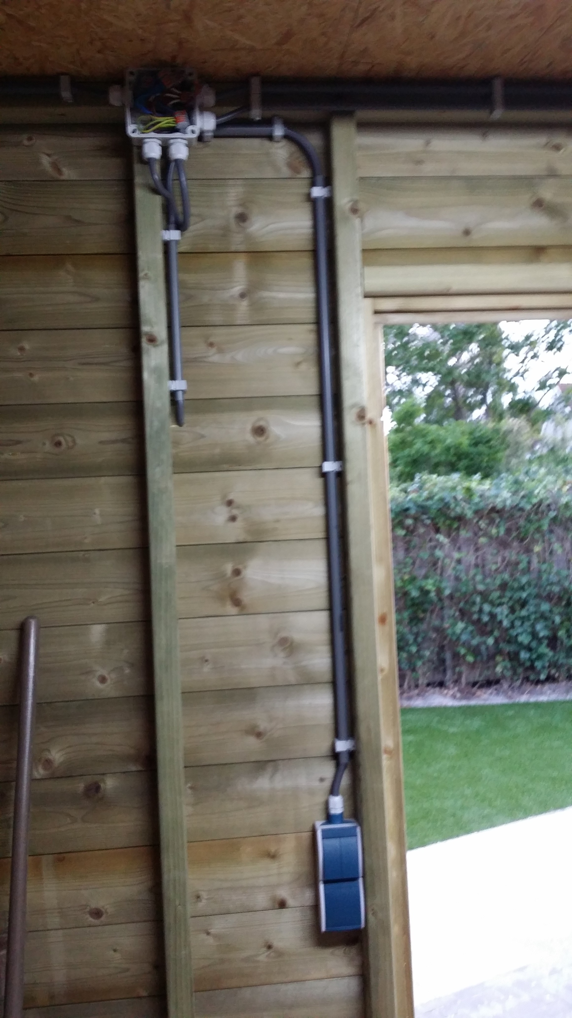 - Ik trek de electra vanuit de bestaande garage naar de nieuwe veranda (ik ga wel eerst langs lamp1).