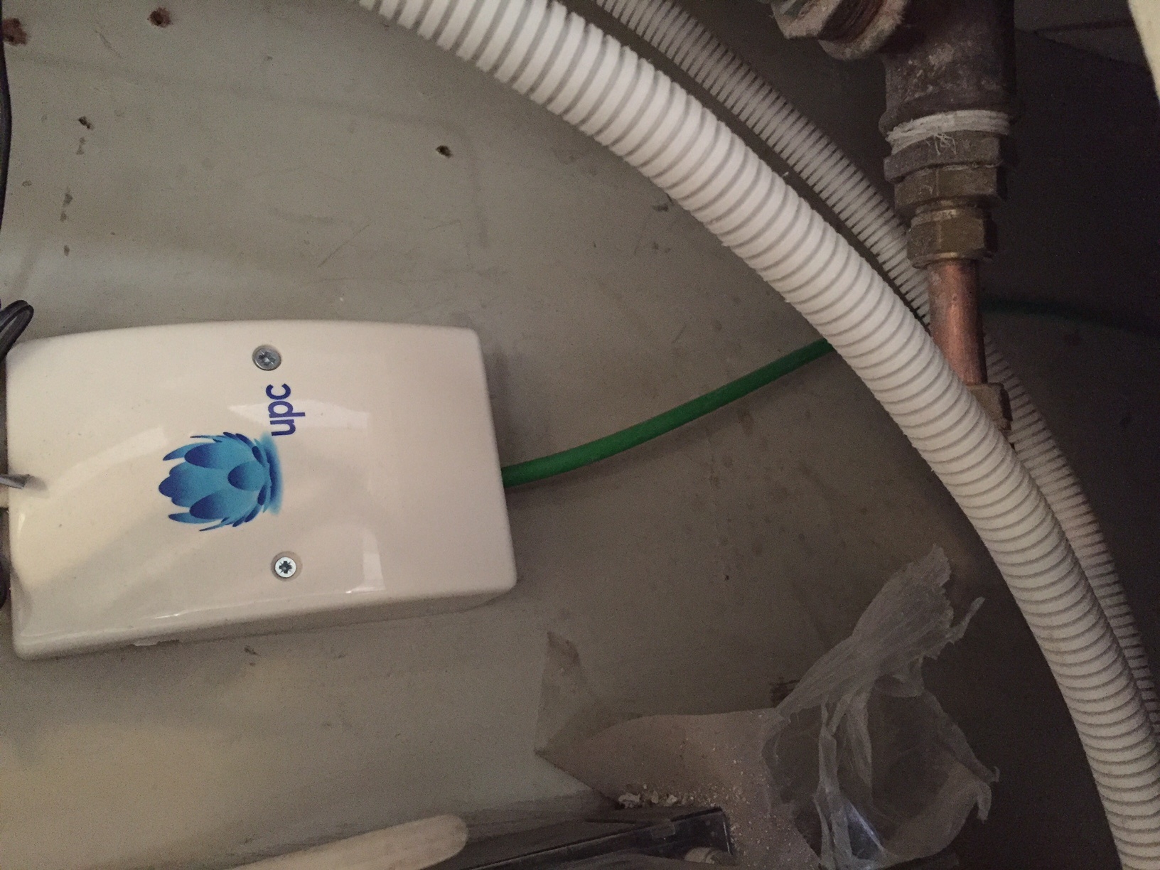 In de huidige situatie komt de groene coax binnen en gaat direct een UPC kastje in (wat is dit) en vervolgens komt daar coax uit die naar de router gaat.