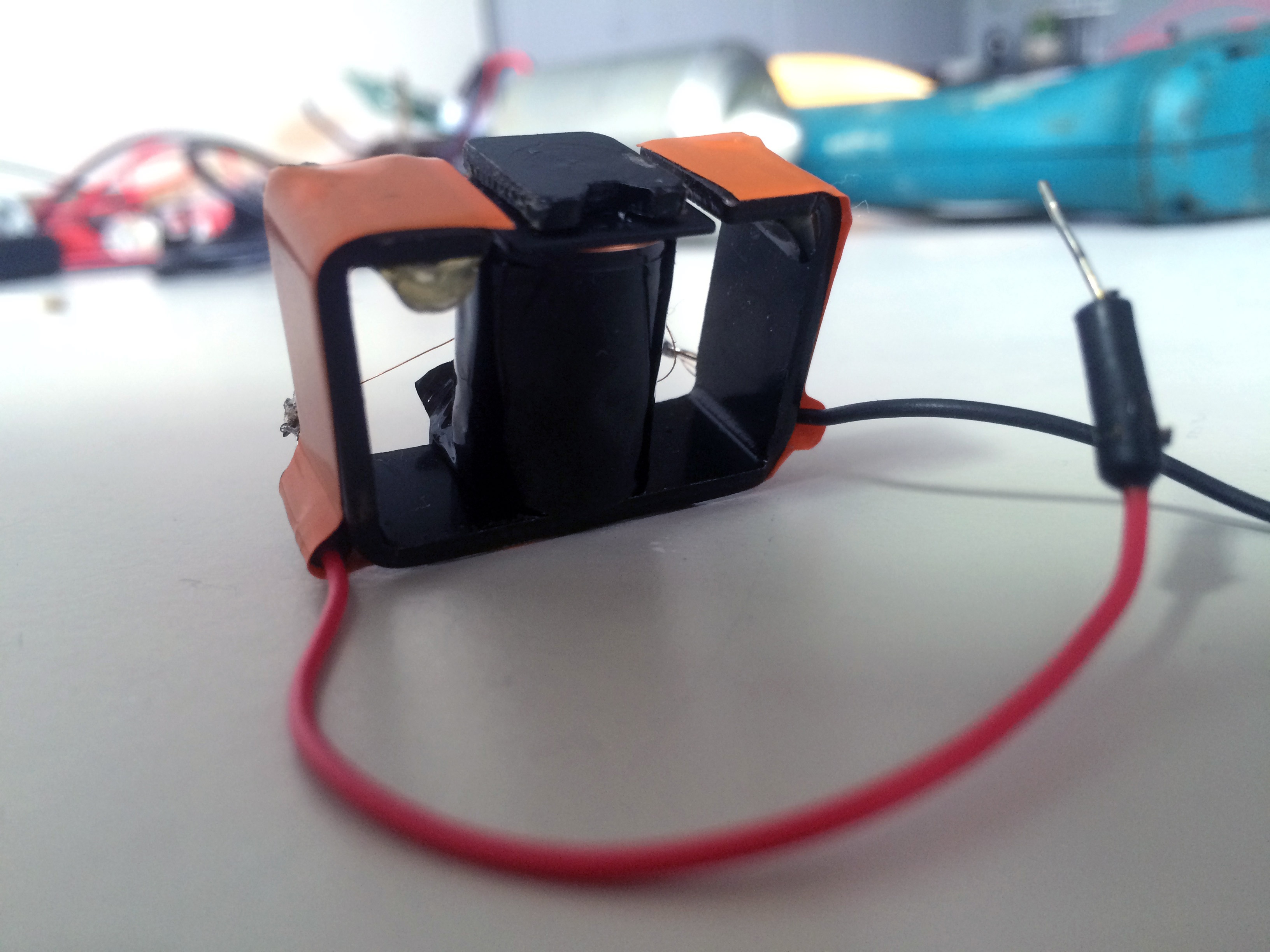 Hij komt uit een fietslampje. Zo'n één waar er een magneet tussen de spaken gaat en een lampje ernaast wordt opgehangen. Een beetje a la Reelight.