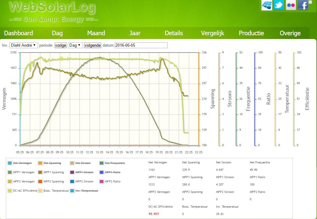 maar wel op een hete na zomer dag, dus iets lagere W per mpp.