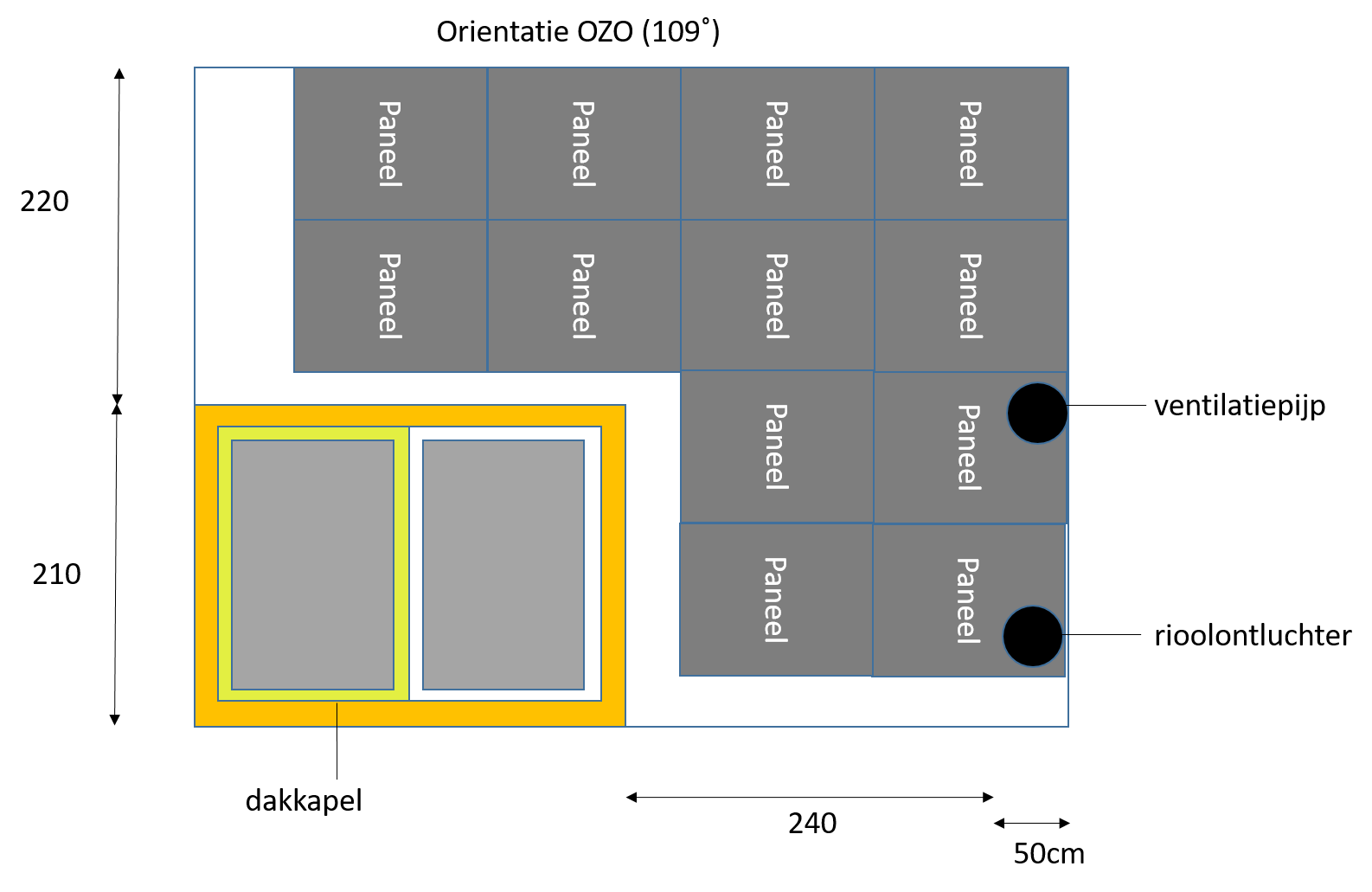Alle panelen in een string moeten wel gelijk zijn in lengte en dezelfde kant op kijken.