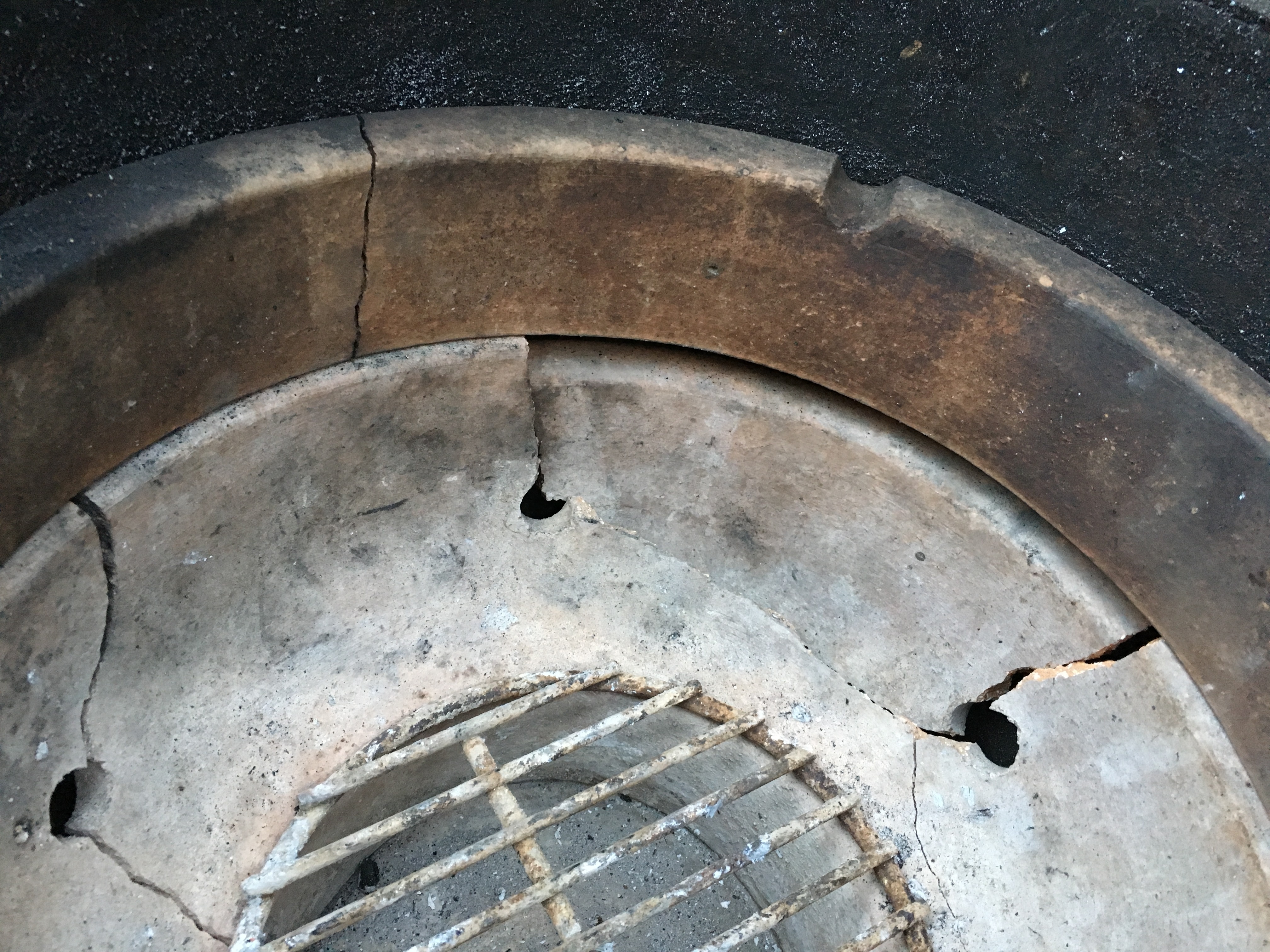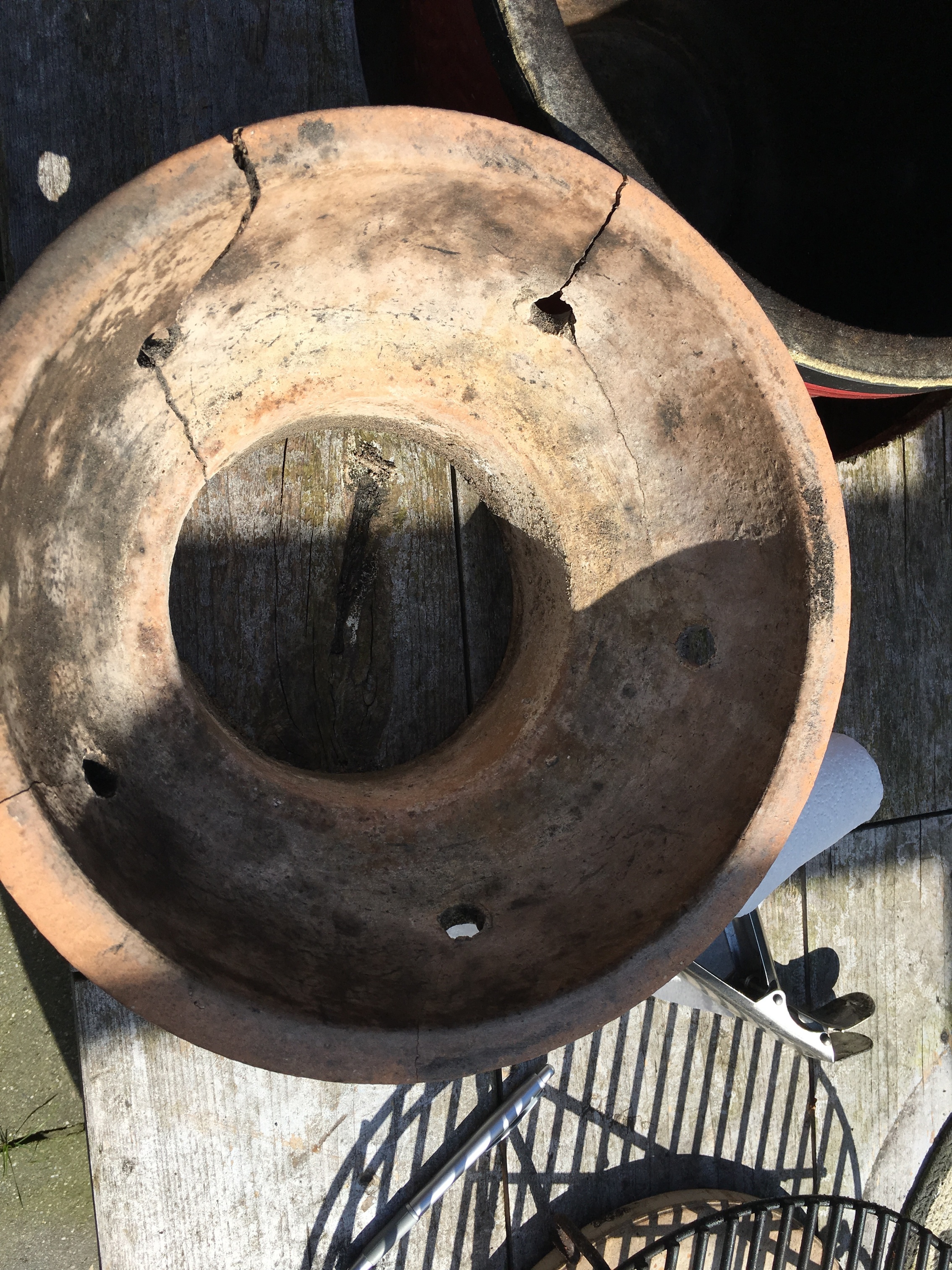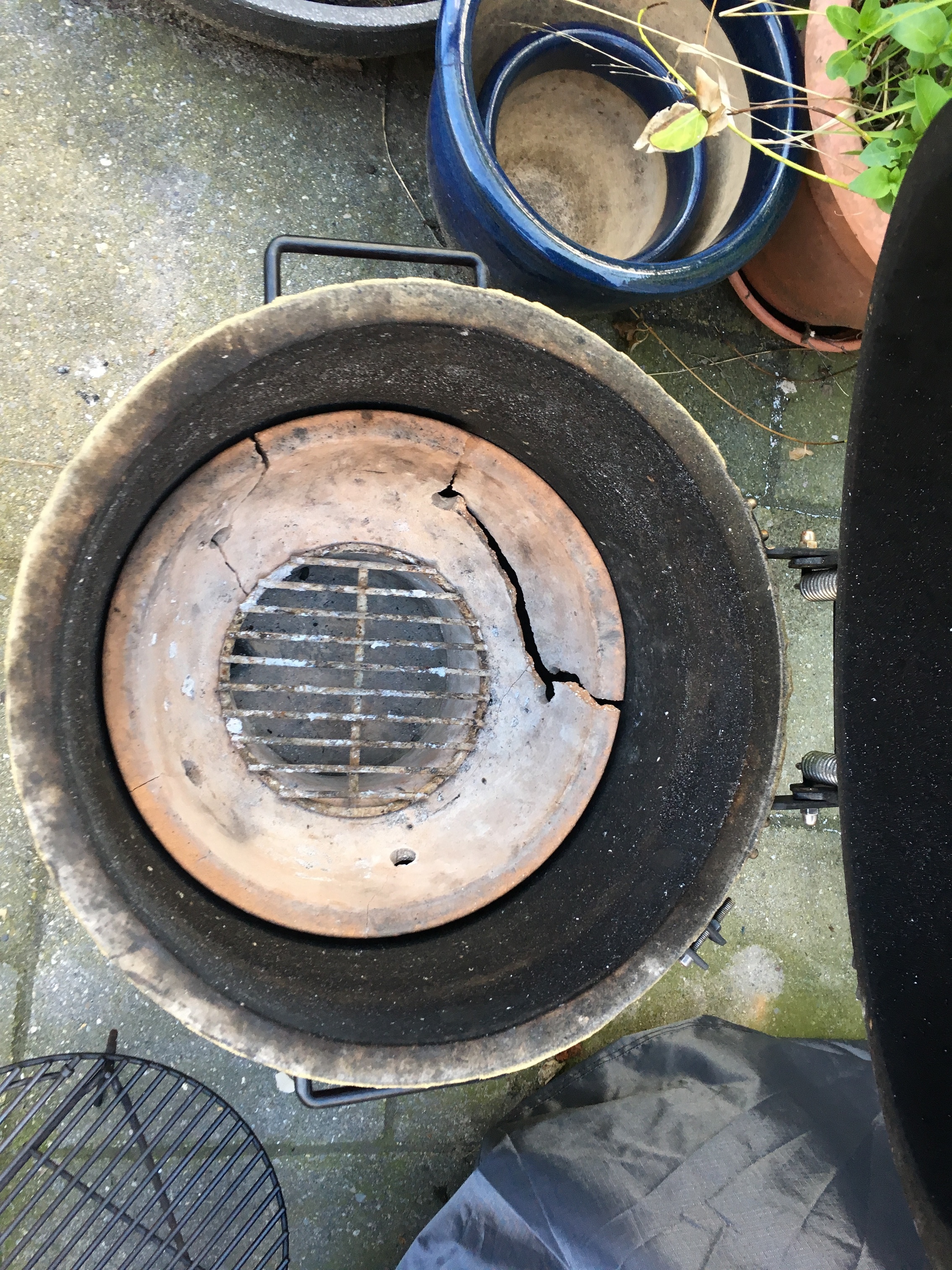 Helaas dacht ik bij het terugzetten niet na en wilde ik de ring wat meer op zijn plaats duwen door mijn hand af te zetten tegen de vuurkorf en.... krak.