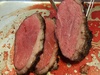 BBQ heeft netjes tussen de 116 en 119 gelopen. Eerst even de vetlaag een klein beetje aangegrild boven de kolen. Daarna een uur met de deksel dicht richting de kern 55. Toen nog even kort afgegrild en 10 minuten onder een aluminium folietje. Was lekker sappig en mals, maar een ribeye blijft toch de favoriet.