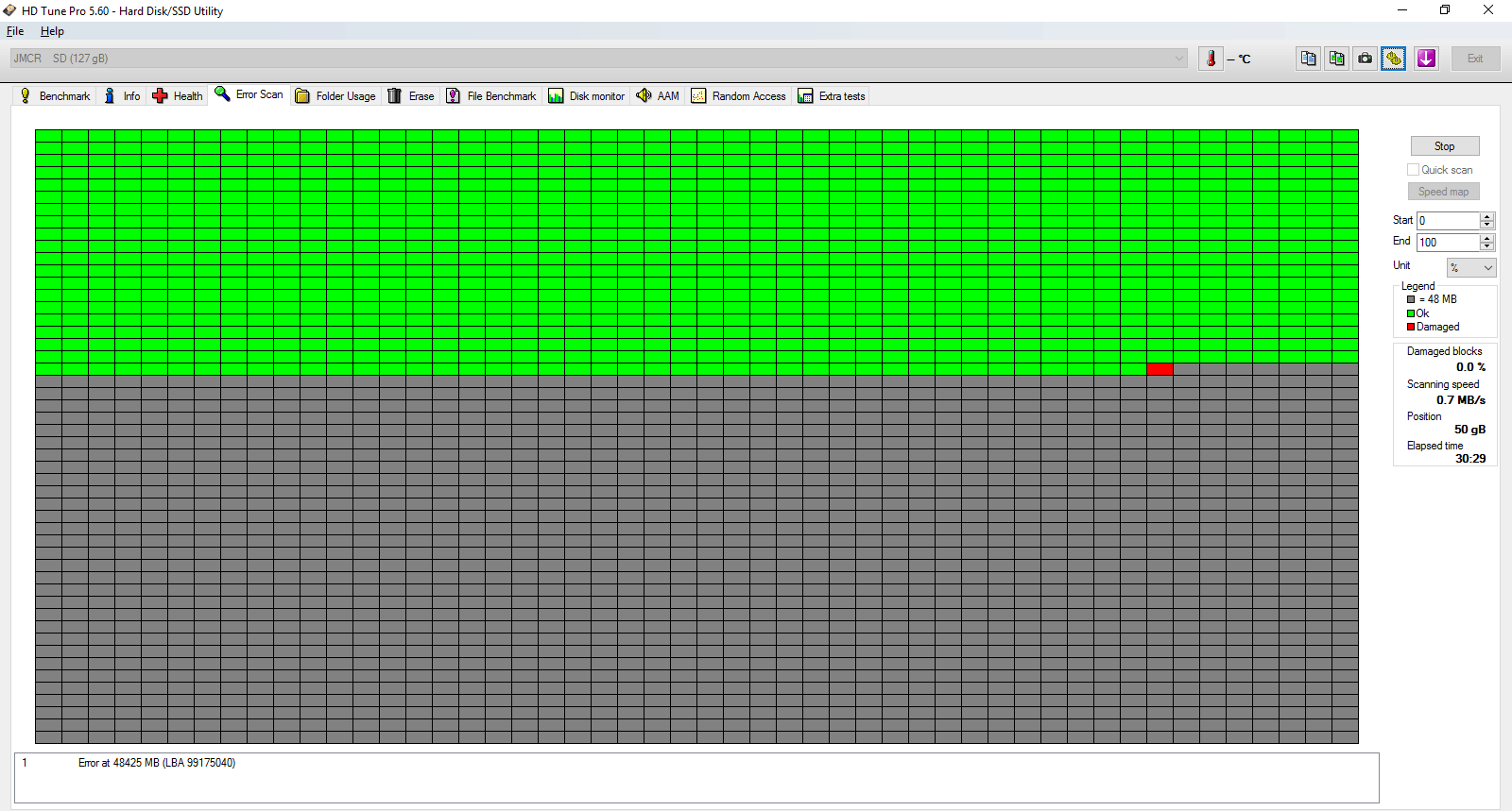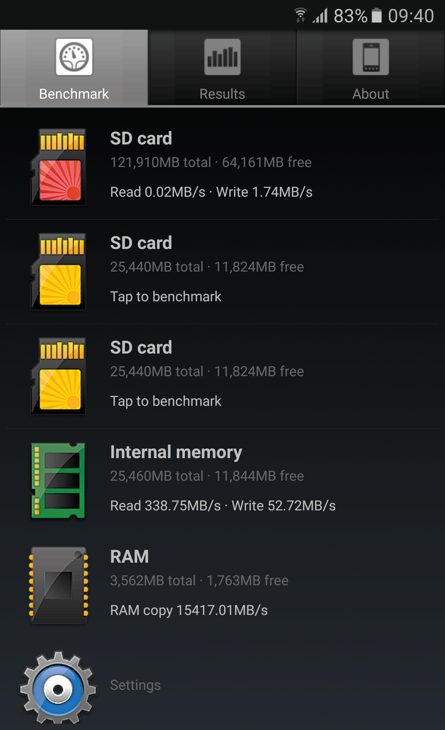Dat in het meegestuurde screenshot te zien was dat de snelheden vér beneden de specs lagen had dus geen invloed op het al dan niet defect zijn van de SD-kaart.
